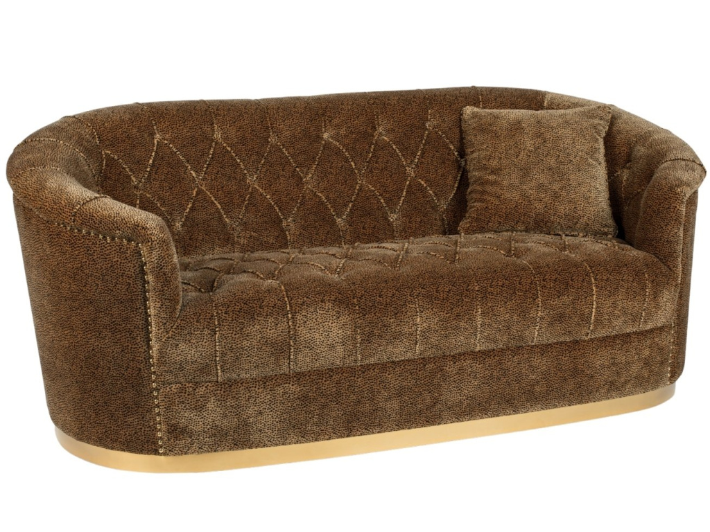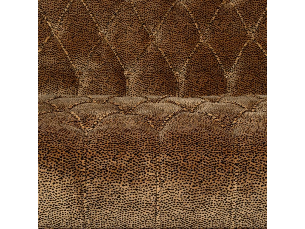 Designová pohovka Too Pretty To Sit On značky Bold Monkey vyniká svým doslova "královským" zpracováním hledající inspiraci ve stylu art deco. Čalounění ze sametové látky v hnědé tygrované barvě doplněné dominantním vzorem dodává pohovce jedinečný a vskutku originální vzhled, který zaujme. Díky použitým materiálům splňuje vysoké nároky na pohodlí a je vhodná do klasických interiérů, stejně tak designového prostředí. Pyšní se certifikátem FFRs, který zaručuje určitý stupeň nehořlavosti (cigarety, apod), a proto se hodí nejen do domácností, ale zejména do komerčních prostor, hotelů, čekáren, kanceláří, apod.