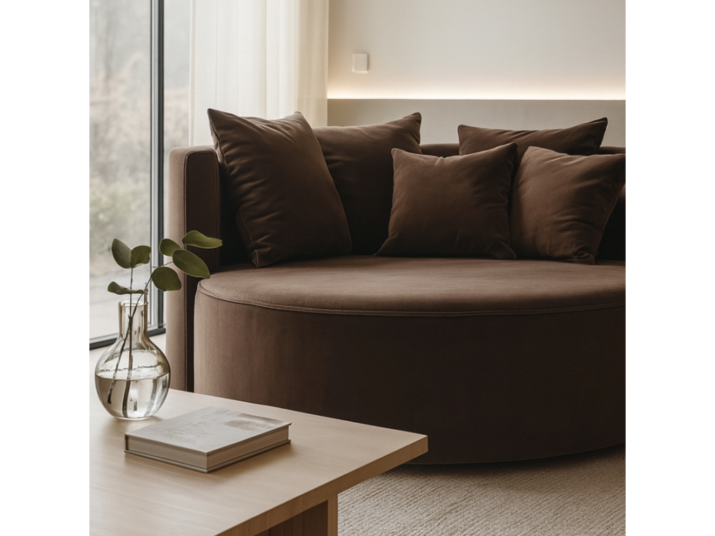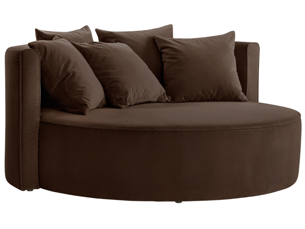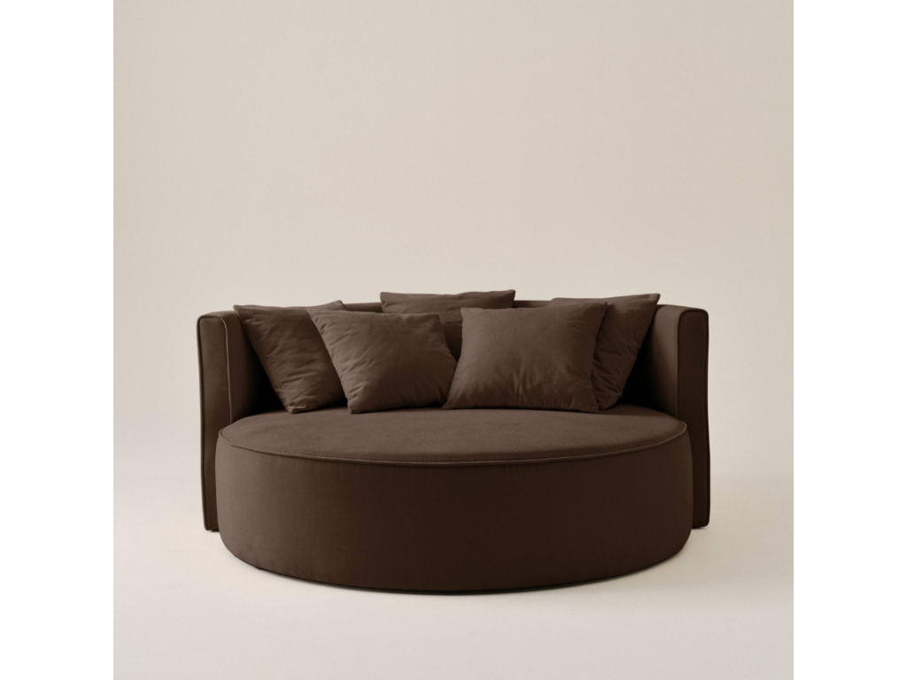 Objevte útulnost a styl s kulatou dvoumístnou pohovkou WYOMING TEDDY. Tato elegantní designovka je potažena hebkou sametovou látkou, která jí dodává hřejivý a moderní vzhled. Součástí balení je 5 dekorativních polštářů s výplní z peří a vláknitých kuliček, které ještě umocňují pohodlí, a navíc mají snímatelné povlaky se zipem, takže je jejich údržba snadnější. Odolnost čalounění 80.000 Martindale, což zaručuje dlouhou životnost a odolnost proti opotřebení. Díky kulatému tvaru a sametovému čalounění představuje WYOMING dokonalé místo pro odpočinek – ať už se do ní zachumláte sami, nebo ji budete sdílet s někým blízkým!
