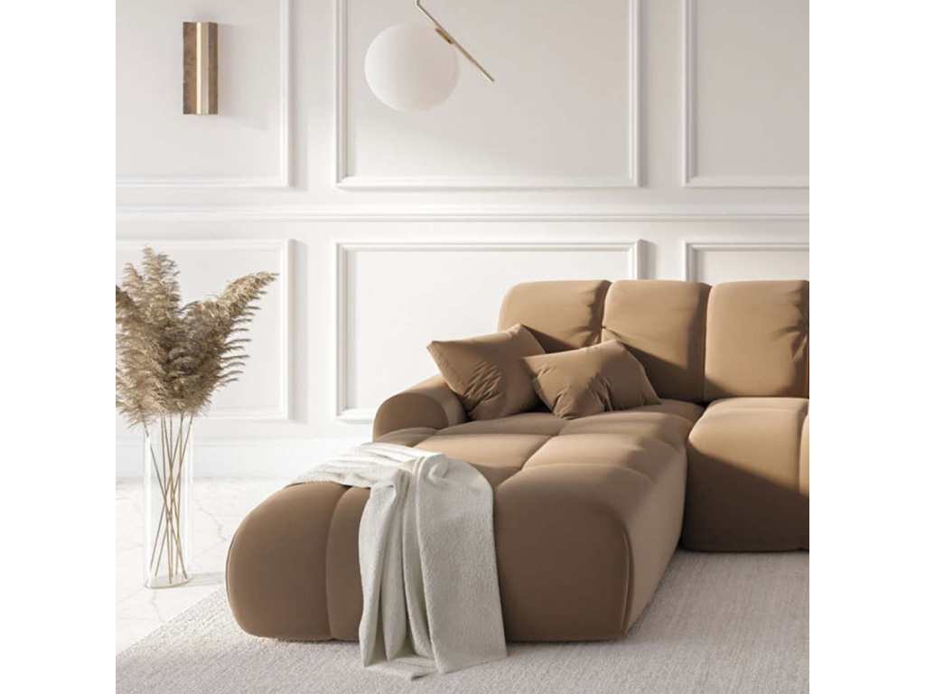 Rohová pohovka Tous představuje promyšlené spojení elegantního designu, pohodlí a vysoce kvalitního zpracování. Nadčasové linie, pečlivě tvarované sedáky s výrazným prošíváním a široké opěrky zajišťují, že se Tous stane stylovým a plně funkčním prvkem každého interiéru. Exkluzivní sametové čalounění s jemným leskem dodává celku nádech luxusu a je příjemný na dotek. Celek doplňuje nastavitelná opěrka hlavy, díky níž si dopřejete maximální pohodlí – ať už relaxujete po náročném dni, užíváte si filmový večer nebo trávíte čas s přáteli. Tous je jednoduše pohovka, která dokonale spojuje styl, relax i praktičnost v jeden výjimečný celek.