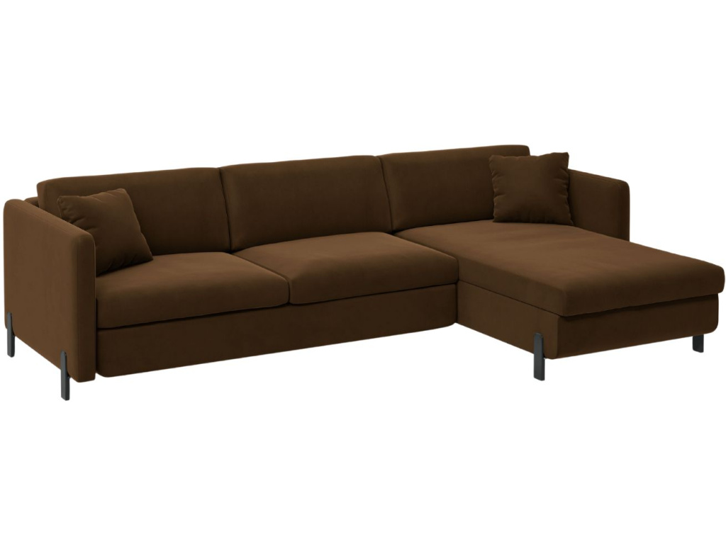 Rohová čtyřmístná pohovka Gloria je elegantní kombinací klasiky a moderního stylu, která se stane dominantou každého interiéru. Její lehká silueta na elegantní kovové podnoži působí vzdušně a nadčasově, zatímco měkce polstrované sedáky a opěrky zaručují pohodlí při každodenním odpočinku. Velkou předností je rozkládací funkce s expresním mechanismem, díky kterému během chvilky vytvoříte pohodlné lůžko vhodné pro návštěvy či víkendové lenošení. Součástí jsou i dekorativní polštářky, které pohovce dodávají útulný vzhled. Luxusní sametová látka s jemným leskem a krátkým vlasem je na dotek velmi příjemná a zároveň mimořádně odolná. Díky technologii LiquidBlocked tekutiny nepronikají do vláken, a povrch se tak snadno čistí. Látka navíc splňuje bezpečnostní normu odolnosti vůči vznícení, což ji činí vhodnou i do komerčních prostor. Pohovka Gloria skvěle zapadne do moderních i klasických interiérů – ať už jde o obývací pokoj, pracovnu, nebo menší byt. Pro ještě větší pohodlí a stylový vzhled doporučujeme doplnit ji o konferenční stolek, měkký pléd nebo dekorativní polštáře.