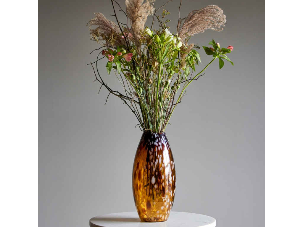 Skleněná váza Daraz od značky Bloomingville je unikátní foukaná váza s atraktivním vzorem v odstínu hnědé barvy. Váza má dokonalý tvar pro velkou kytici čerstvých nebo sušených květin. Bez květin obstojí váza i jako krásný dekorativní prvek na konferenčním stolku, parapetu či komodě.