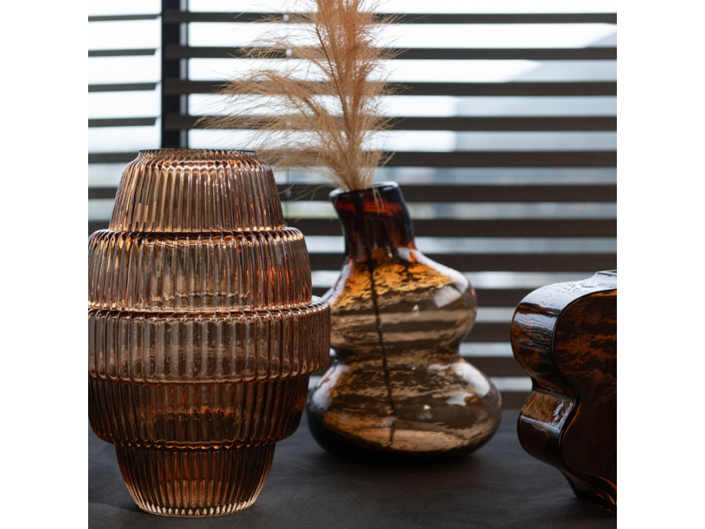 Minimalistická, a přesto výrazná – taková je váza Flashy od značky J-line. Váza z transparentního hnědého skla se bude vyjímat v každé místnosti domova a přinese do ní prvek čistoty a elegance. Do zaobleného těla vázy můžete vložit nejen květiny, ale skvěle jí doplní také dekorativní kamínky nebo písek. Tato váza je ideální do rustikálních a vintage interiérů, které jsou laděny do přírodních a neutrálních barev.