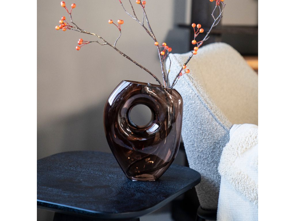 Skleněná váza Nana zaujme svým elegantním organickým tvarem, který je doplněn výrazným kruhovým otvorem, procházejícím tělem vázy. Tento neobvyklý detail přidává na originalitě a dělá z této vázy výrazný dekorativní prvek. Váza Nana přichází ve dvou variantách tvarů i barevných provedení, což umožňuje hru s kombinacemi a laděním s ostatními interiérovými doplňky.