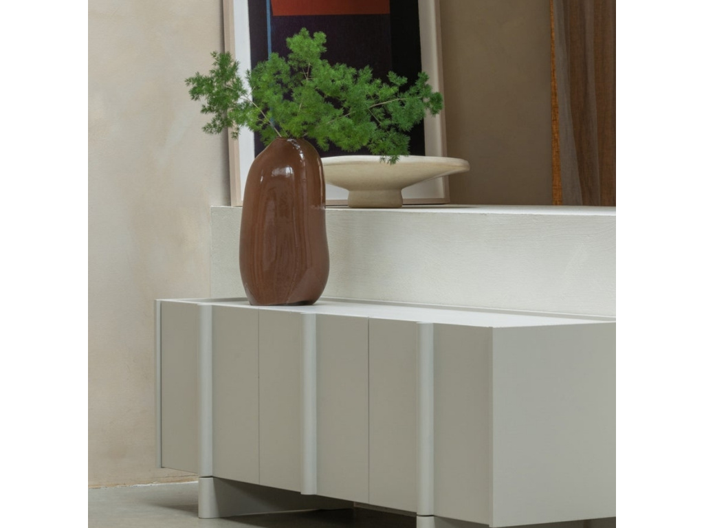 Skleněná váza Sahil okamžitě upoutá pozornost. Texturovaný povrch odráží světlo a prozrazuje drobné nepravidelnosti ruční práce, které jí dodávají jedinečný charakter a zvyšují její estetickou hodnotu. Díky svému abstraktnímu zpracování působí uvolněně, autenticky a sebevědomě – nepotřebuje dalších příkras, ví, že je výrazná a jedinečná přesně taková, jaká je. Snadno doplní interiéry ve stylu boho, moderního minimalismu i retro prostory. Díky subtilnímu tvaru s úzkým otvorem nahoře rámuje květy tak, aby vynikly – od drobných lučních kvítků přes sezónní větvičky.