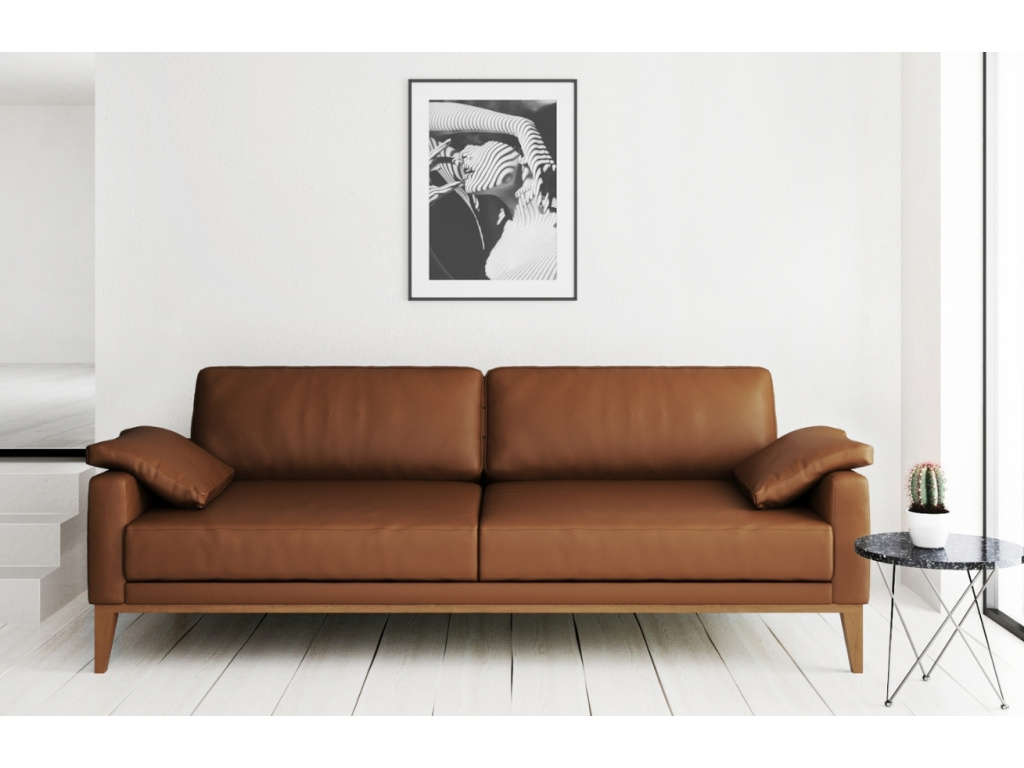 Designová pohovka MESONICA Musso bude díky svému úchvatnému vzhledu nepřehlédnutelnou součástí vaší domácnosti. Stabilní podnož z bukového dřeva je skvěle doplněna o hnědé čalounění z kvalitní přírodní kůže, které dodává pohovce estetický vzhled a nadprůměrnou životnost.