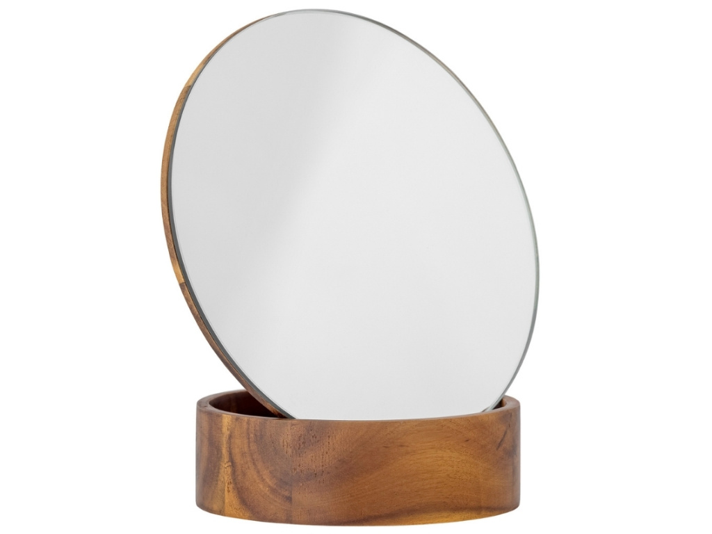 Zrcadlo Rita od Bloomingville je malé kosmetické zrcadlo s podstavou z akátového dřeva ve tvaru misky, do které můžete ukládat vaše šperky a drobné cennosti. Elegantní a minimalistický design z něj dělá stylový kousek, který se hodí do každé koupelny nebo ložnice. Použijte jej jako funkční doplněk nebo jako dekorativní prvek ve vašem interiéru.