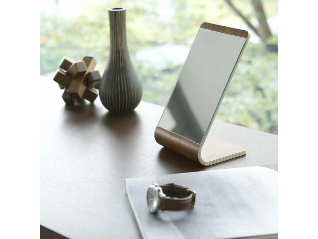 Stolní kosmetické zrcadlo Rin od značky Yamazaki je elegantní a funkční doplněk do každého interiéru. Moderní a minimalistický vzhled v tmavém přírodním provedení se hodí do různých typů interiérů. Rin je perfektní pro každodenní použití v ložnici, koupelně nebo na toaletním stolku. Díky svým kompaktním rozměrům je snadno přenosné a vhodné i na cesty.