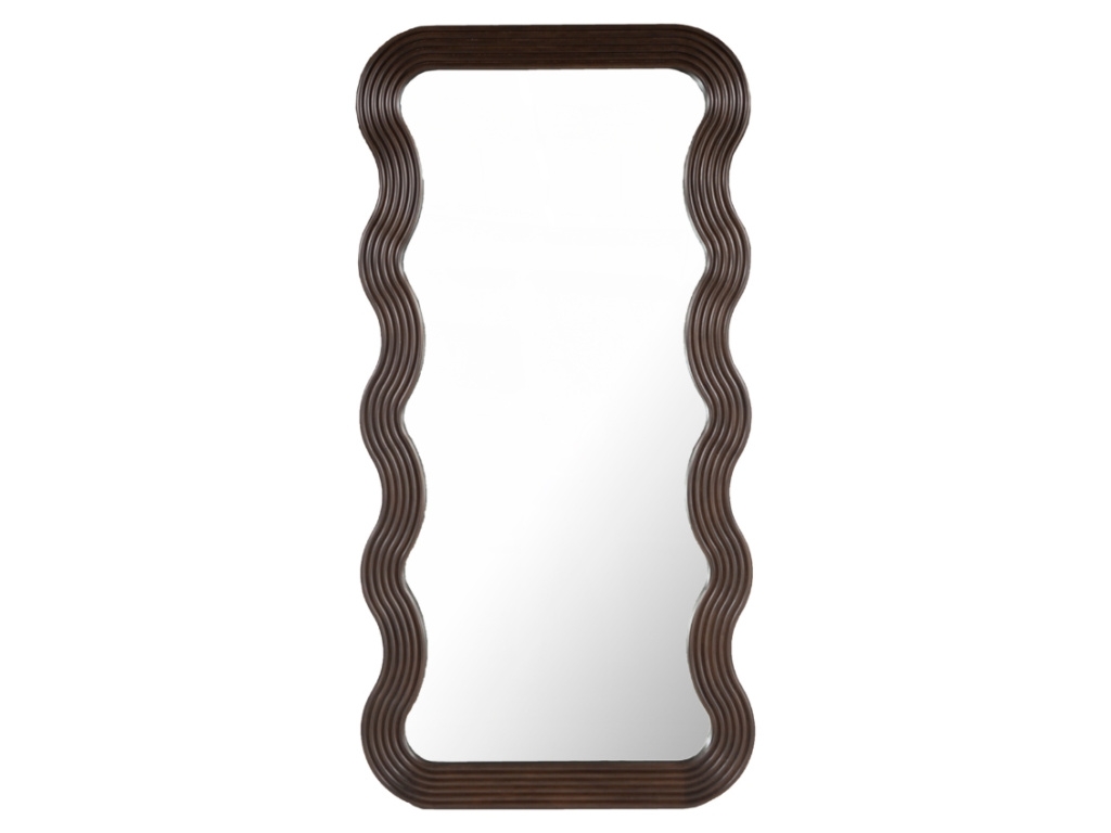 Zrcadlo Mayfield přináší do interiéru harmonii plynulých linií a jemnou eleganci. Vlnitý dřevěný rám vzbuzuje dojem pohybu, který přitahuje pozornost. Tmavé dřevo se žebrovanými detaily přináší kontrast a hloubku ke klasickému zrcadlovému povrchu. Je ideální volbou do ložnice nebo chodby jako stylový prvek pro každodenní kontrolu outfitu. Skvělý doplněk pro ty, kdo milují přírodní materiály a jemné organické tvary.