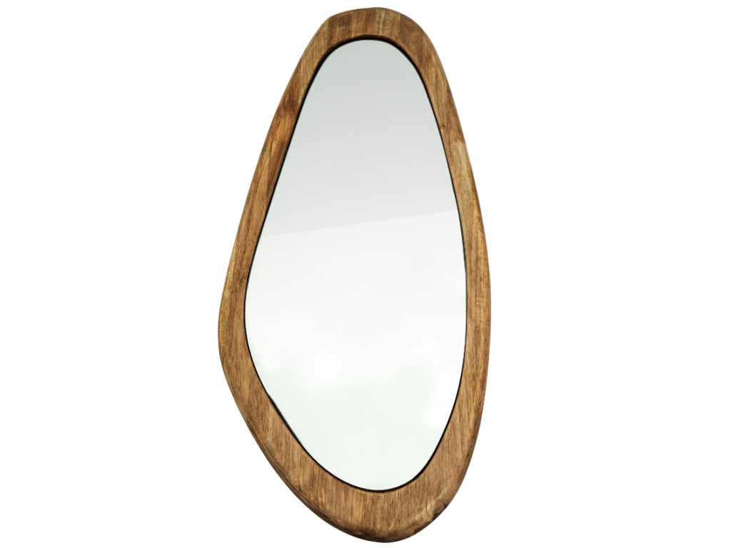 Závěsné zrcadlo Laban okouzlí svým masivním dřevěným rámem a nepravidelným organickým tvarem, který připomíná volně rostoucí přírodu. Hřejivé dřevo přinese do interiéru teplé a autentické tóny, které krásně plní boho nebo rustikální prostory. Hravý design zároveň dodá místnosti dynamiku a přirozenou eleganci. Laban je dostupné ve dvou velikostech různých tvarů, jejichž kombinací vytvoříte kreativní kompozici na stěně. Nebo jej doplňte o stojací zrcadlo Laban pro exkluzivní vzhled vašeho domova.