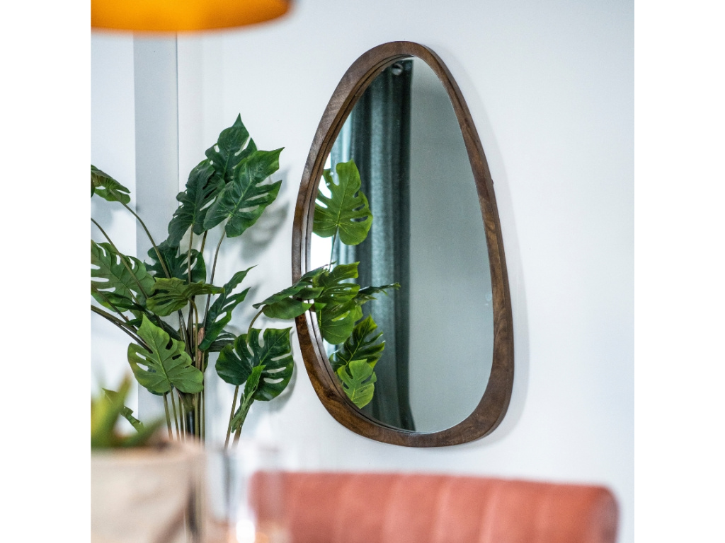 Zrcadlo Plecto z mangového dřeva osloví svým organickým tvarem a nepravidelně širokým rámem, který vnáší do interiéru uvolněnou atmosféru. Jeho přírodní struktura v černém nebo hnědém provedení z něj dělá skvělý doplněk do boho či rustikálních prostorů, kde vynikne jeho autentický vzhled. Díky možnosti zavěšení na výšku i na šířku nabízí flexibilitu v umístění a vy si jej tak můžete přizpůsobit vašim preferencím. Plecto přinese do vašeho domova nejen funkčnost, ale i přirozenou krásu inspirovanou přírodou.