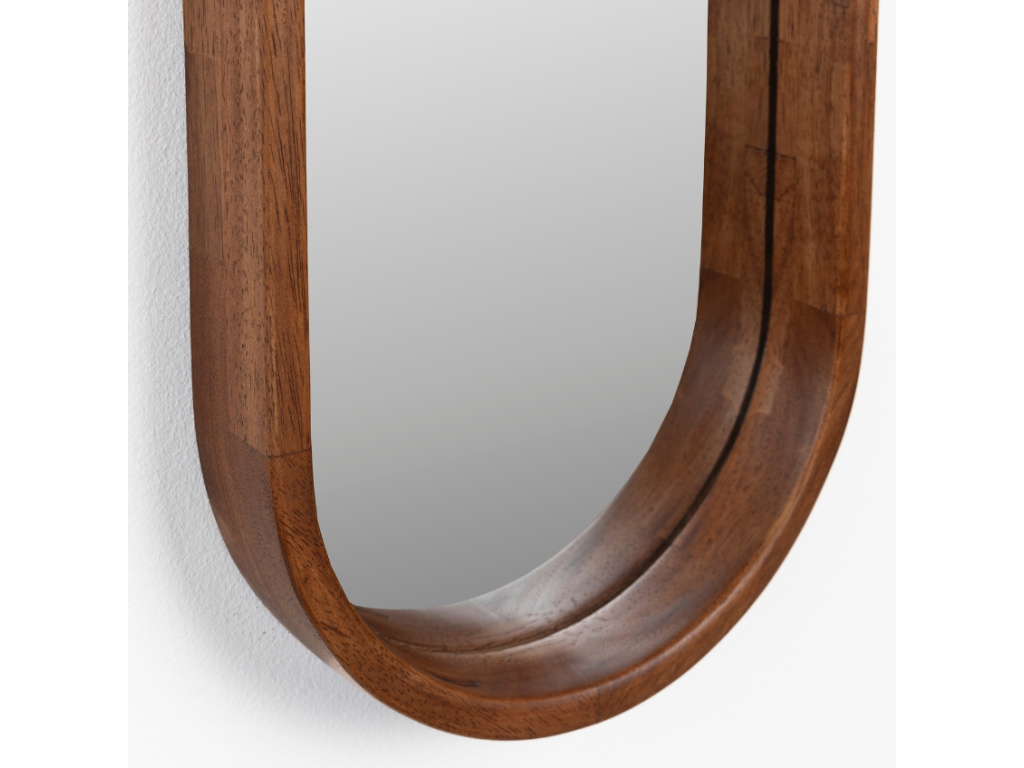 Závěsné zrcadlo NYKO od značky White Label Living představuje propracovaný doplněk, který bude bezpochyby designovým prvkem do vašeho domova. Rám zrcadla je vyrobený z masivního dřeva, mořený hnědou barvou. Ta celému kousku dodává elegantní vzhled a zároveň zanechává jedinečnou strukturu dřeva. Jednoduchý tvar zrcadla potěší všechny milovníky minimalismu, ať bude zdobit prázdnou zeď samostatně nebo spolu s dalším zrcadlem z této kolekce.
