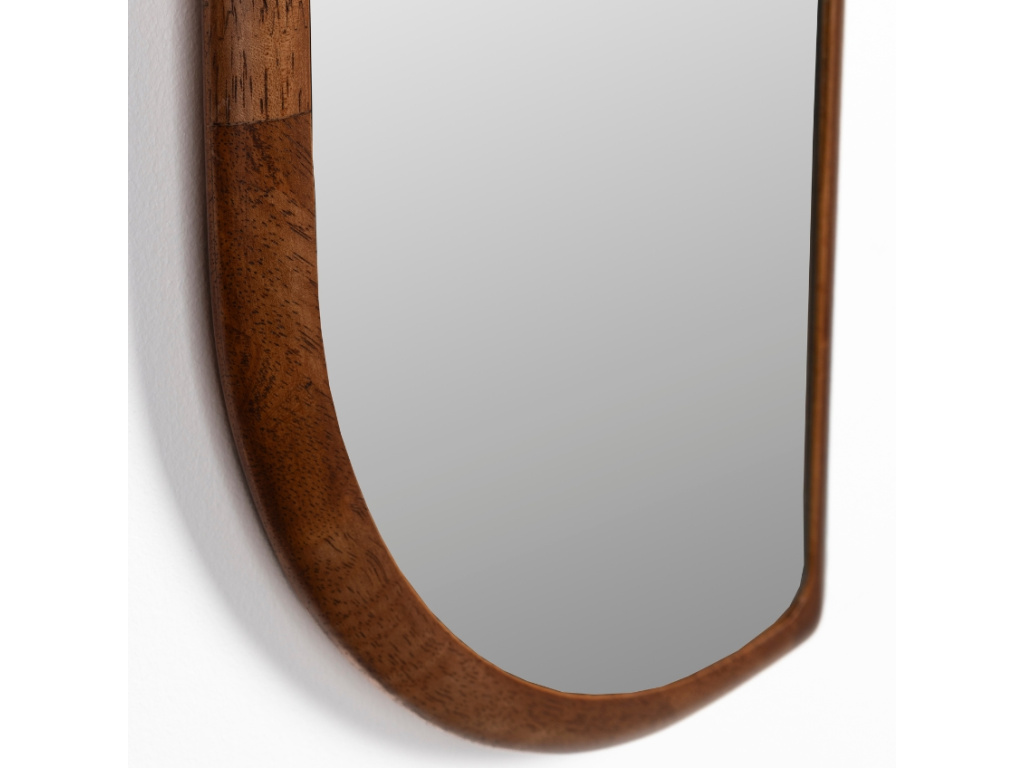 Závěsné zrcadlo NYKO od značky White Label Living představuje propracovaný doplněk, který bude bezpochyby designovým prvkem do vašeho domova. Rám zrcadla je vyrobený z dřevěného masivu, mořený hnědou barvou. Ta celému kousku dodává elegantní vzhled a zároveň zanechává jedinečnou strukturu dřeva. Jednoduchý tvar zrcadla potěší všechny milovníky minimalismu, ať bude zdobit prázdnou zeď samostatně nebo spolu s dalším zrcadlem z této kolekce.