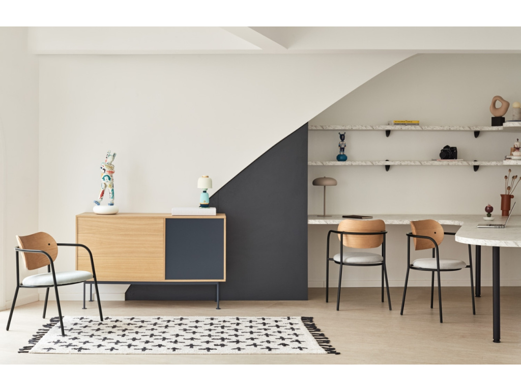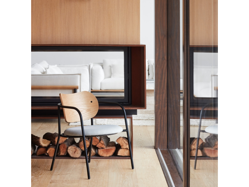 Stylové lounge křeslo Eclipse od značky Teulat nachází inspiraci v klasických designech kombinujících kovové a dřevěné prvky, které tvoří přímo ikonický vzhled. Příjemnou látkou čalouněný sedák a opěradlo z dubové dýhy jsou tvarované s ohledem na pohodlí během dlouhého sezení. Jde o elegantní a všestranný design, který krásně splyne s okolím ať už v koutku obývacího pokoje, kolem jídelního či zasedacího stolu v kanceláři nebo umístěný v hotelové hale.