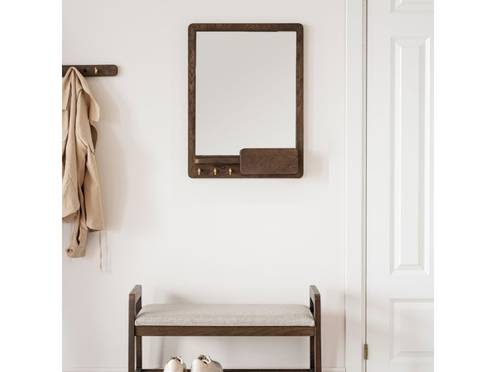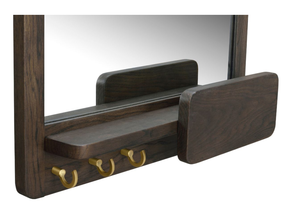 Závěsné zrcadlo INVERNESS značky ROWICO má rám vyrobený z masivního dubového dřeva a jeho tmavá hnědá barva je vkusně doplněna zlatými detaily v podobě háčků. Ty můžete využít třeba k zavěšení klíčů nebo deštníků. Jistě oceníte také praktickou poličku, která se bude hodit k odložení drobnosti. Dopřejte vaší předsíni nové vybavení a slaďte ji s produkty z elegantní a nadčasové série INVERNESS - prostor s nimi získá nádech vintage stylu.