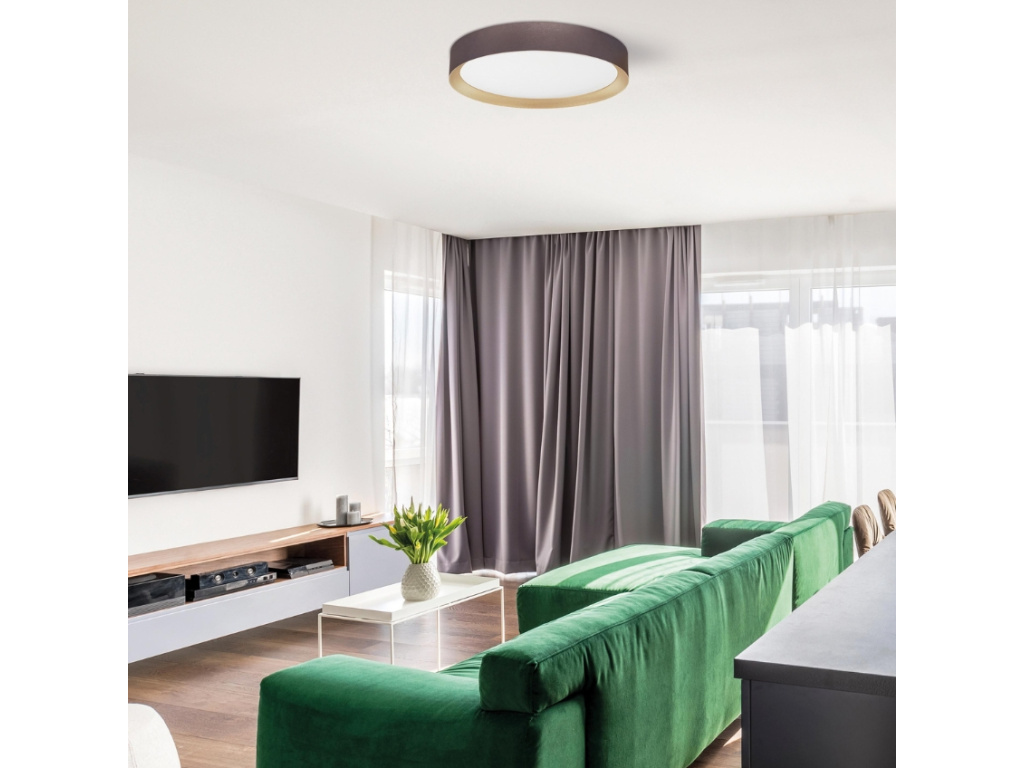 Jednouché stropní světlo Luton od Nova Luce se stane nenápadným, leč designovým doplňkem vašeho interiéru. Je vyrobené z hliníku v hnědém odstínu, který elegantně doplňuje zlatá barva uvnitř kruhu. Díky tomu ho snadno začleníte do barevněji i neutrálně laděných interiérů. Svítidlo vyzařuje teplé bílé světlo, které navodí příjemnou atmosféru jakékoliv místnosti. Skvěle ho začleníte do moderních, minimalistických či severských interiérů.