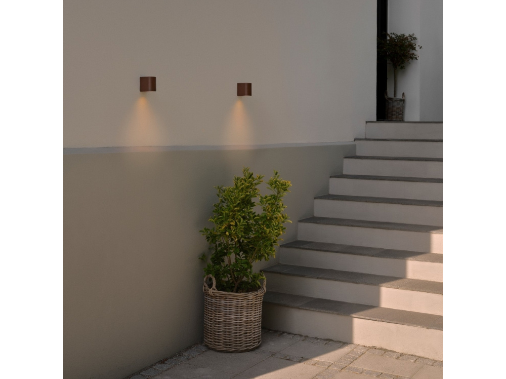 Nadčasové, nenápadné a odolné. Nástěnné světlo Dion vyniká čistým designem s jemně zaobleným tvarem a rezavým odstínem, což dohromady vytváří svěží a moderní náboj. Směrované světlo dolů vytváří dekorativní efekt – ideální pro osvětlení fasády, vstupních dveří nebo příjezdové cesty. Možnost paralelního zapojení a bočního vstupu kabelu zajišťuje snadnou instalaci v různých typech exteriérů. Dion dodá vašemu venkovnímu prostoru příjemné světlo a nadčasový vzhled, který jen tak neomrzí.