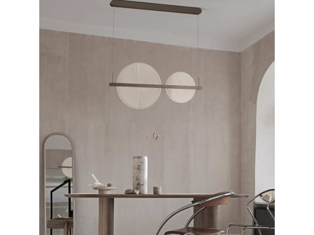 Závěsné LED svítidlo Noah od Nova Luce zaujme svým moderním a nadčasovým designem, který kombinuje minimalismus s jemnými detaily. Konstrukce z hliníku zajišťuje nejen lehkost, ale i dlouhou životnost a kvalitní světelný efekt. Dva kruhové akrylové disky vytváří jemný, rovnoměrně rozptýlený svit, který dodává interiéru stylový nádech. Díky integrované LED technologii je svítidlo energeticky úsporné a poskytuje příjemné osvětlení, ideální nad jídelní stoly, do obývacích pokojů či do moderních kancelářských prostorů. Noah je perfektní volbou pro ty, kteří hledají vkusné a funkční osvětlení s designovým prvkem.