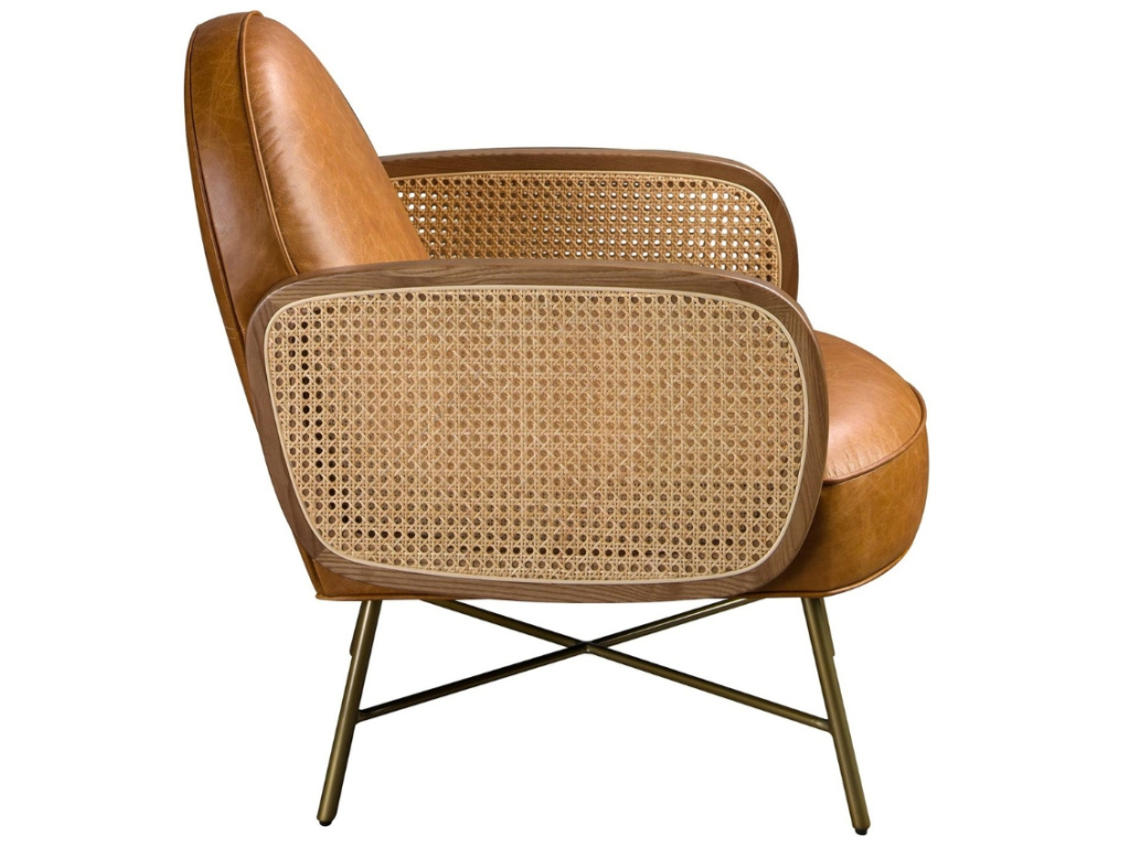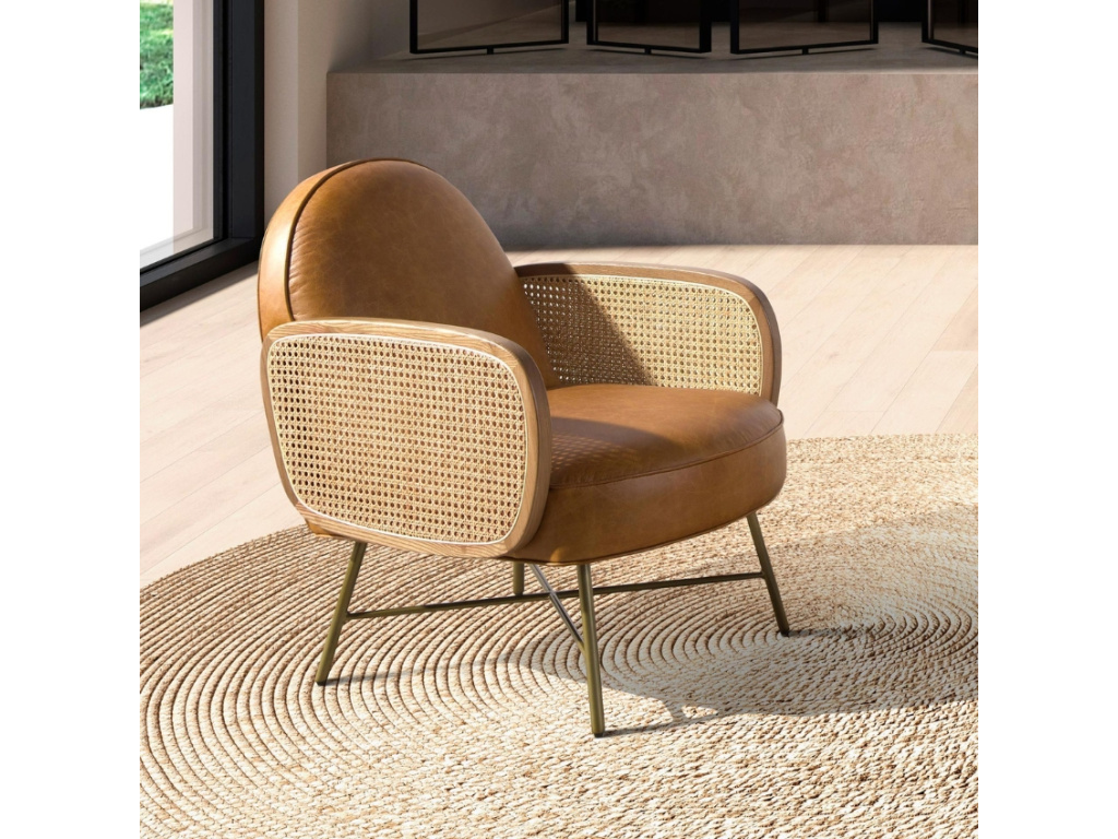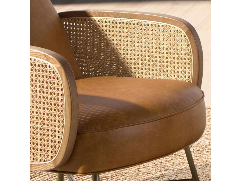 Když se potká hnědá přírodní kůže, ratan a zlaté detaily, vznikne křeslo, které promění každý kout v oázu klidu i stylu. Tento elegantní designový kousek v sobě spojuje pohodlí, estetiku i praktičnost – čalounění z hovězí kůže dodává interiéru sofistikovaný charakter, zatímco jemný ratanový výplet na područkách vnáší do celku lehkost a jedinečnost. Pohodlný sedák s výplní z polyuretanové pěny a prostorné opěradlo jsou jako stvořené pro chvíle relaxace – ať už u knihy, sklenky vína nebo při večerním odpočinku u dobrého filmu. Zlatá kovová podnož navíc dodává křeslu eleganci bez zbytečné okázalosti. Tento kousek nepodléhá trendům – s přehledem se stane trvalou součástí vašeho domova!