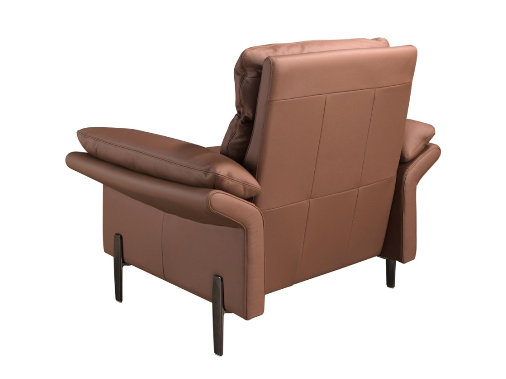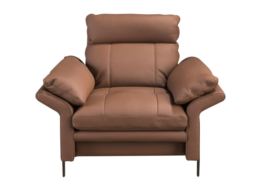 Toto křeslo si vás získá svým klidným sebevědomím. Hladké linie, čalounění z pravé kůže a štíhlá ocelová podnož v černé barvě tvoří harmonii, která působí moderně, ale ne chladně. Je to přesně ten typ designového nábytku, který působí přirozeně a přitom zanechá dojem. Díky měkkému polstrování a mírně skloněnému opěradlu nabízí křeslo maximální pohodlí pro každodenní chvíle odpočinku. Ať už v obývacím pokoji, pracovně nebo jako solitér v ložnici, dodá prostoru osobitost a kultivovaný styl. Je důkazem, že jednoduchost může být tím největším luxusem! Doplnit ho navíc můžete také dvoumístnou nebo trojmístnou pohovkou.