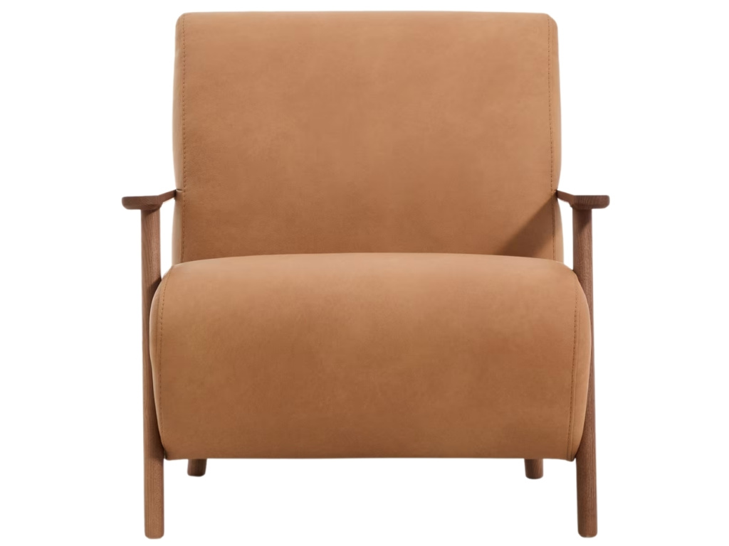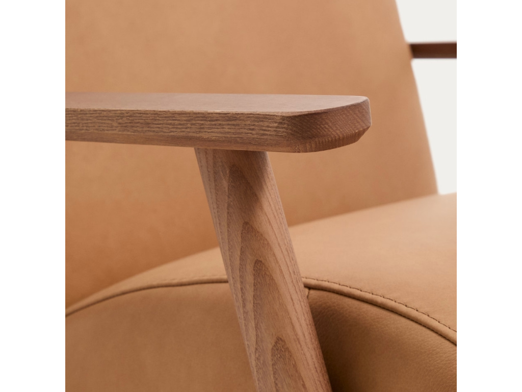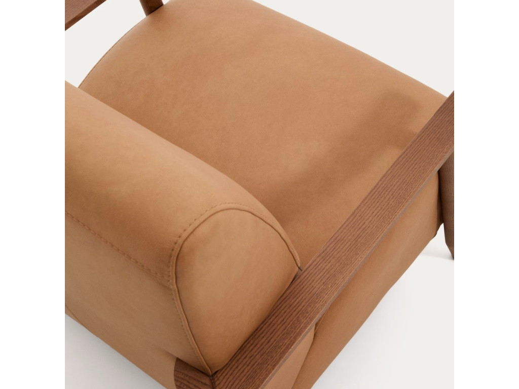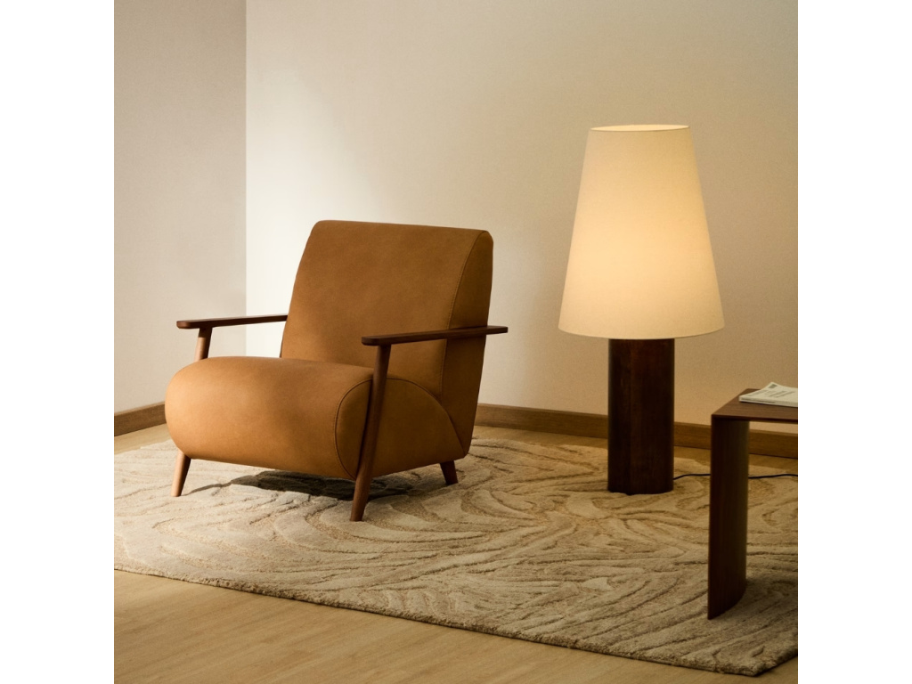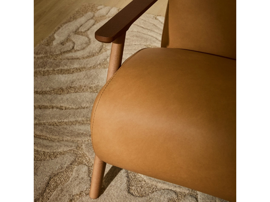 Křeslo Meghan je čalouněné extra měkkou italskou telecí kůží s přírodní kresbou a povrchovou úpravou nuvolatura, která dodává kůži jedinečný rustikální charakter a hloubku tónu. Konstrukci tvoří masivní jasanové dřevo s povrchovou úpravou v odstínu ořechu. Odhalené dřevěné části v kombinaci s měkkými liniemi čalounění vytvářejí harmonii mezi robustností a lehkostí. Kůže je činěna v závodech využívajících obnovitelné zdroje energie, s recyklací vody a přírodními barvivy bez PFC, a pochází od dodavatele s prestižní certifikací Leather Working Group – Gold, která garantuje odpovědné a ekologické zpracování. Dřevo má certifikaci FSC™ Mix Credit – pochází z udržitelných a kontrolovaných zdrojů. Meghan je víc než jen křeslo – je to ikonický kus nábytku, který propojuje komfort, udržitelnost a design s duší.