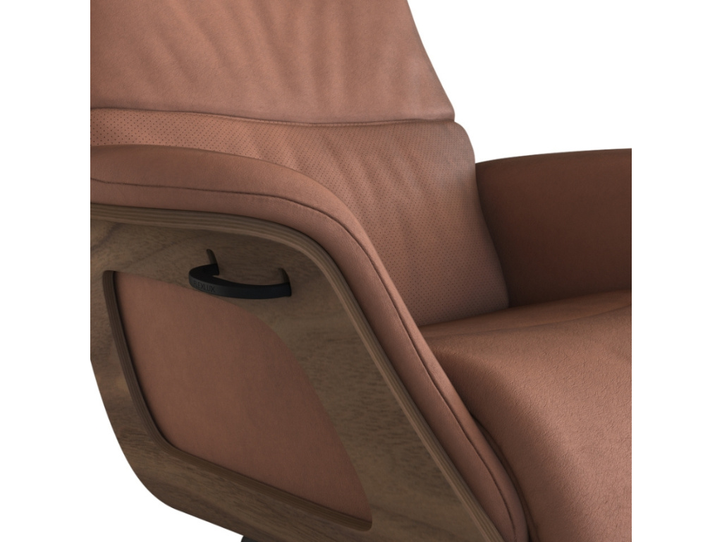 Hnědé kožené lounge křeslo Clement značky Flexlux na první pohled zaujme svou konstrukcí z ořechové dýhy, která vytváří ojedinělý bytelný základ celého systému. Tato robustní konstrukce v kombinaci s koženým sedákem a hliníkovou podnoží v černé barvě vytváří atraktivní kontrast. Konstrukce křesla, čalounění i jeho jednoduché tvary jsou promyšleny do posledního detailu. Měkké polstrování koženého sedáku a opěradla zajišťují kromě nadčasového a osobitého vzhledu také maximální komfort. Křeslo je čalouněné anilinovou kůží Nature v jedinečném kaštanově hnědém odstínu. Pokud jste milovníci přírodní a velmi jemné kůže, Nature je pro vás skvělou volbou. Použitá kůže má velkou tloušťku, je pohodlná a dodává křeslu nejen sofistikovaný, ale také luxusní vzhled. Skvělou výhodou je možnost nastavit ho do několika různých poloh včetně hlavové opěrky, čímž si jej přizpůsobíte přesně dle vašich představ. Z tohoto křesla se zkrátka nebudete chtít zvednout. Clement se díky svým odolným vlastnostem skvěle hodí i do komerčních prostor jako jsou hotelová lobby či kanceláře.