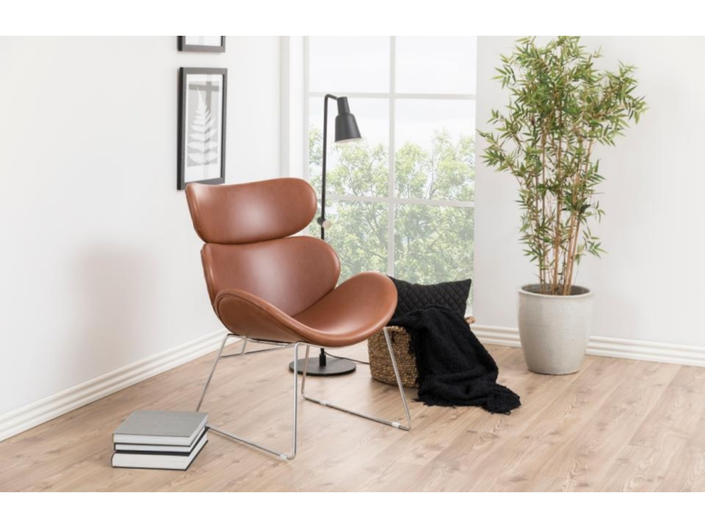Hnědé designové křeslo Classo z ekokůže zaujme na první pohled svým atraktivním a originálním designem. Díky tvaru sedáku a vysokému zadnímu opěradlu zajišťuje vysoké pohodlí. Koženkový pohodlný sedák a opěradlo doplňuje kovová chromová podnož a dodává tak křeslu perfektní stabilitu.