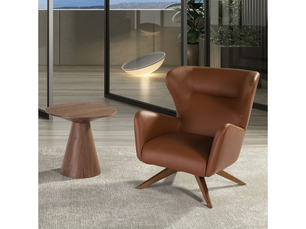 Toto otočné křeslo v hnědé kožence je synonymem pro relaxaci s dotekem luxusu. Ergonomický tvar, vysoké opěradlo a měkké područky zajistí maximální komfort i při delším sezení. Elegantní dřevěná podnož v ořechovém odstínu podtrhuje sofistikovaný design a dodává křeslu perfektní stabilitu. Skvělá volba do obývacího pokoje, čtecího koutku nebo pracovny – kdekoliv potřebujete místo pro pohodový odpočinek. Stačí se usadit a užít si chvíle klidu.