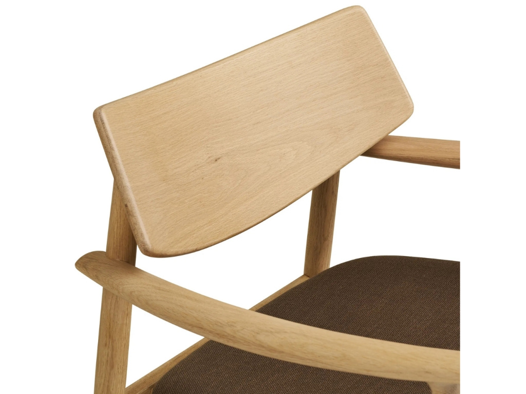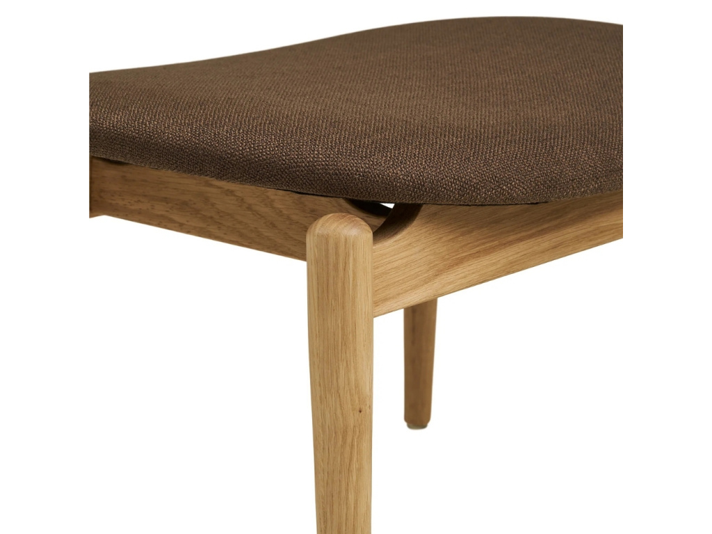 Dubové křeslo Olivera s podnožkou přinese klidnou estetiku, která přirozeně zapadne do interiéru ve stylu japandi, moderní rustiky nebo nadčasového minimalismu. Štíhlá podnož z masivního dřeva elegantně rámuje sedák a zdůrazňuje přirozenou kresbu materiálu. Prohnutý tvar opěradla pohodlně usadí záda a zároveň vytváří vizuální kontrast k jednoduchému designu. Hnědé čalounění působí hřejivě a snadno se sladí s přírodními tóny v interiéru. Podnožka podpoří přirozené uvolnění těla a prodlužuje pohodlí každého okamžiku. Tento kousek kultivuje prostor bez zbytečné okázalosti a snadno se stává oblíbeným místem odpočinku.