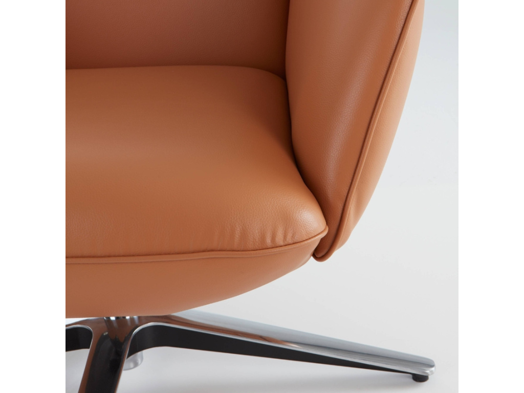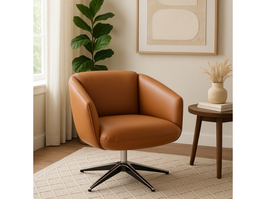 Křeslo ELROY zaujme na první pohled – výrazné proporce, oblý tvar a čalounění z elegantní syntetické kůže vytvářejí ikonický kousek, které si řekne o své místo v každém interiéru. Měkce polstrovaný sedák i opěradlo zajišťují pohodlí pro chvíle klidu, zatímco robustní rám dodává jistotu a stabilitu. Čistý design s retro nádechem skvěle ladí s moderním nábytkem, ale neztratí se ani v odvážněji zařízeném prostoru. ELROY je ideální jako solitér ke knihovně, do čtecího koutku nebo k posezení s šálkem kávy. Představuje výrazný kousek pro ty, kteří se nebojí ukázat svůj styl.