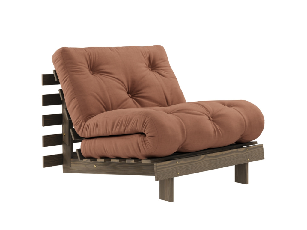Rozkládací křeslo Roots od značky Karup Design se rychle stane vaším oblíbeným společníkem při chvilkách odpočinku. Elegantní a stylové křeslo proměníte jednoduchým pohybem na praktické a pohodlné lůžko. Konstrukce z hnědého masivního borovicového dřeva s FSC certifikací je doplněna kvalitní 12 cm vysokou futonovou matrací, která v sobě kombinuje recyklovaná vlákna a 4 cm pěnu. Křeslo Roots skvěle doplní skandinávsky a minimalisticky laděné domovy. Ideální je například pro menší interiéry, kde oceníte další místo na spaní. Vybrat si ho můžete v široké škále barev.