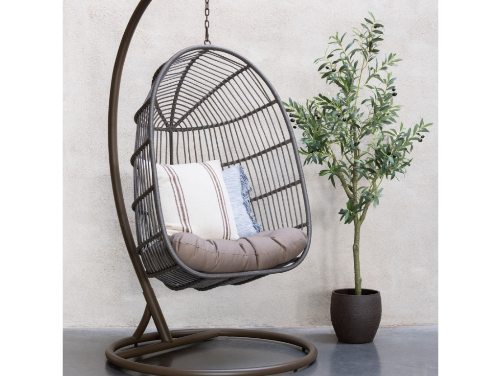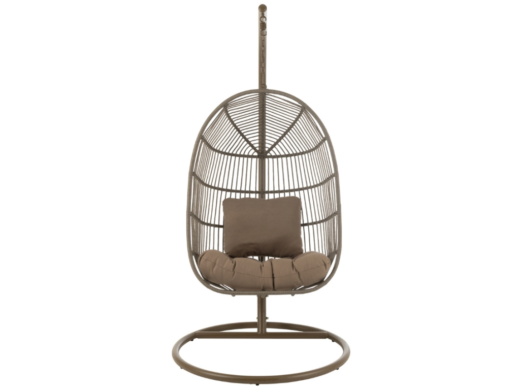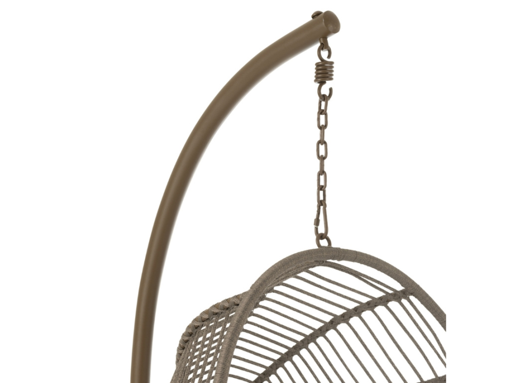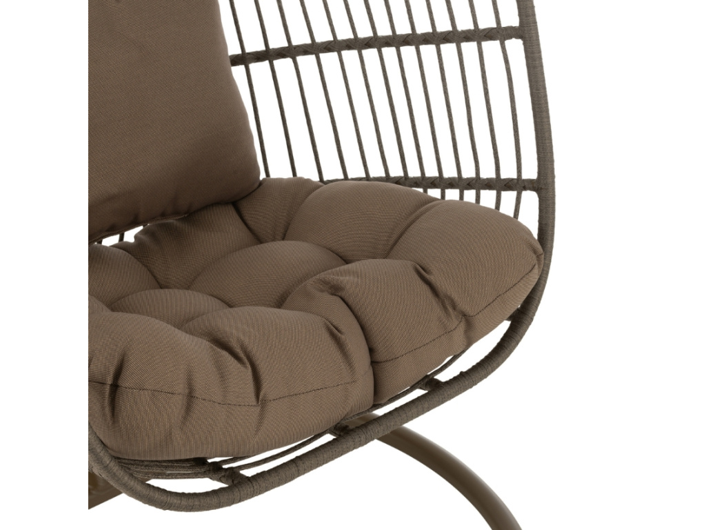 Závěsné zahradní křeslo Egga je perfektním doplňkem pro relaxaci na terase, balkoně nebo zahradě. Tvar je navržen tak, aby tělo přirozeně usadil a vytvořil útulné zázemí pro odpočinek. Konstrukce z odolné oceli zajišťuje maximální stabilitu a dlouhou životnost, zatímco pevný výplet v hnědém odstínu dodává křeslu elegantní vzhled. Měkký sedák a opěrné polštáře zaručují pohodlí i při delším sezení. Design tohoto kousku se hodí k moderním i boho laděným exteriérům. Stane se stylovým prvkem vašeho venkovního prostoru, kde si dopřejete chvíle klidu s maximálním komfortem.