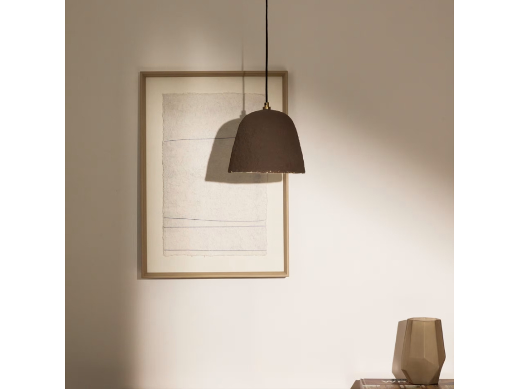 Kolekce závěsných světel Lisora zaujme svým řemeslným zpracováním. Hnědé stínidlo je ručně vyrobené technikou papírmaše z recyklovaných novin. Papírmaš vzniká smícháním rozmělněného papíru, vody a lepidla, které se následně nalévá do forem a nechává se vyschnout. Tento proces zajišťuje, že každý kus má svůj vlastní charakter s jemnými odchylkami v barvě i povrchu. Kónický tvar stínidla šíří měkké světlo, které navozuje příjemnou a uvolněnou atmosféru. Lisora se skvěle hodí do interiérů inspirovaných přírodou a boho estetikou, kde vynikne jako dekorativní i funkční prvek.
