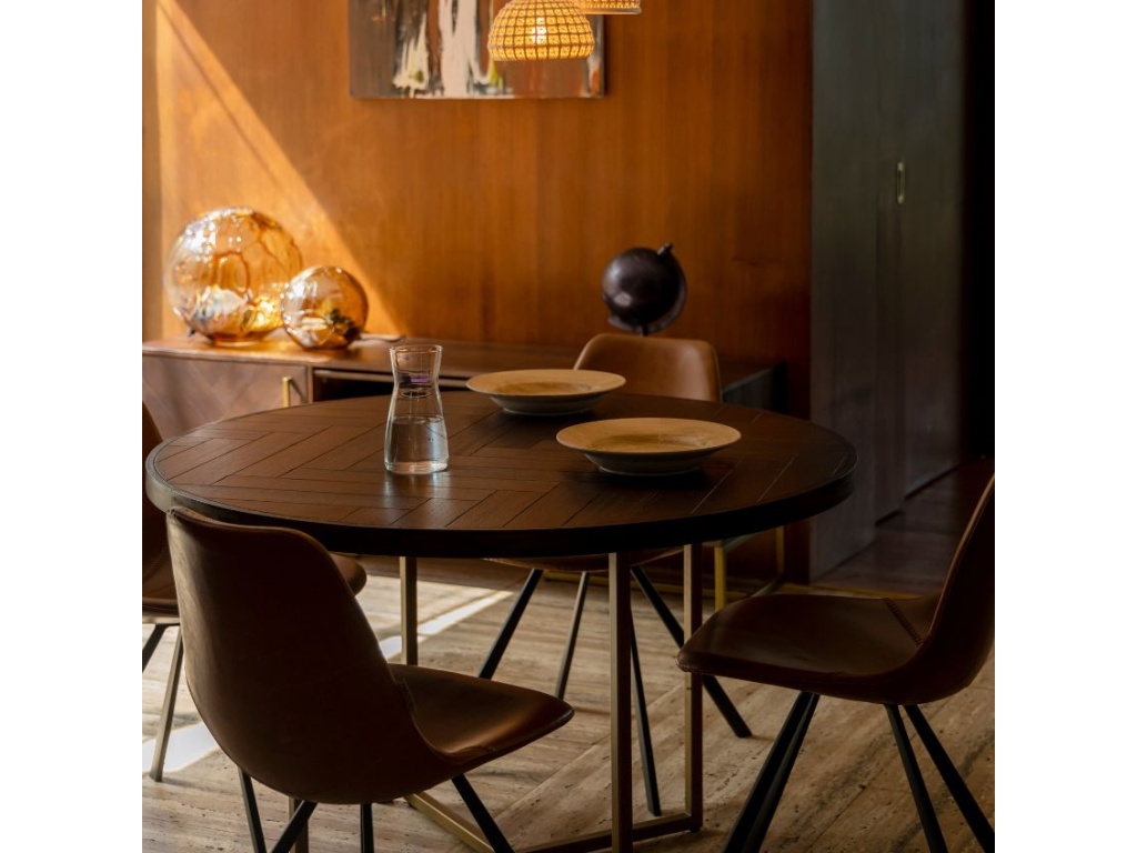 Jídelní stůl Class je tvořen dřevěnou deskou a elegantní podnoží v mosazném odstínu ve stylu vintage. Vrchní část stolu se vzorem rybích kostí je vyrobena z polotvrdé dřevovláknité desky, kterou z obou stran pokrývají tenké desky z akátové dýhy. Podnož je zakončena gumovými podložkami chránícími vaší podlahu před poškrábáním. Stůl můžete skvěle doladit s dalšími kousky ze série DUTCHBONE CLASS.