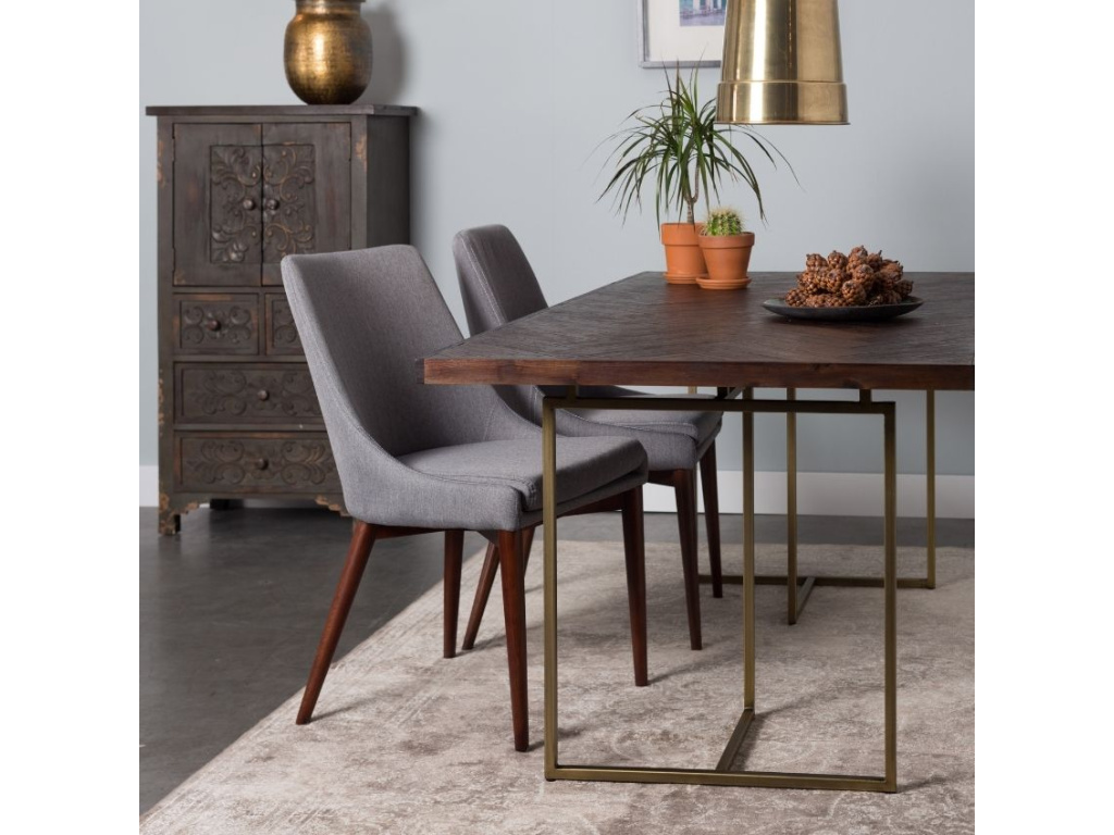 Hnědý jídelní stůl Class je tvořen dřevěnou deskou a elegantní podnoží v mosazném odstínu ve stylu vintage. Vrchní část stolu se vzorem rybích kostí je vyrobena z polotvrdé dřevovláknité desky, kterou z obou stran pokrývají tenké desky z akátové dýhy. Podnož je zakončena gumovými podložkami chránícími vaší podlahu před poškrábáním. Stůl můžete skvěle doladit s dalšími kousky ze série DUTCHBONE CLASS.