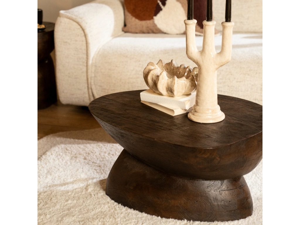 Organický tvar stolku Cobble z masivního mangového dřeva přinese do vašeho obývacího pokoje příjemný dotek přírody. Jeho nepravidelná forma a přirozená kresba dřeva z něj dělají jedinečný prvek, který skvěle zapadne do boho či rustikálního stylu. Využijete ho nejen jako praktickou plochu pro šálky kávy, ale i jako platformu pro oblíbené dekorace nebo květinové aranžmá. Cobble dodá vaší domácnosti hřejivou a útulnou atmosféru.