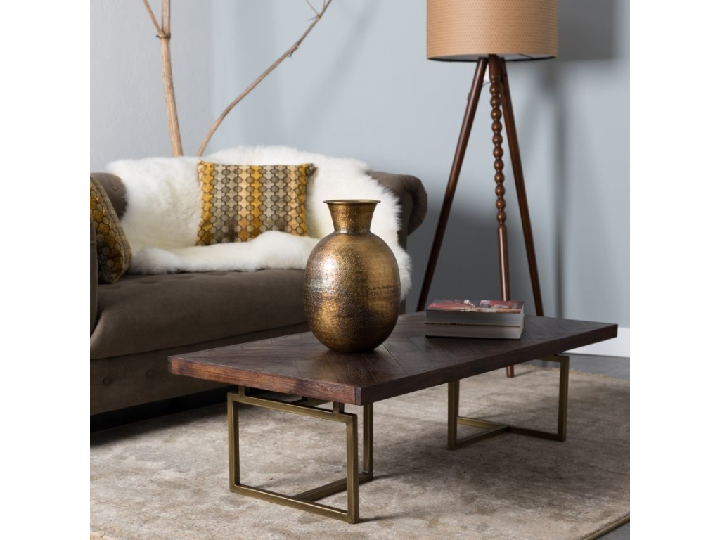 Hnědý konferenční stolek Class je tvořen dřevěnou deskou a elegantní kovovou podnoží. Je navržen ve stylu vintage a stane se nepřehlédnutelnou součástí interiéru. Vrchní část stolu se vzorem rybích kostí je vyrobena z polotvrdé dřevovláknité desky, kterou z obou stran pokrývají tenké desky z akátové dýhy. Podnož je zakončena gumovými podložkami. Stolek můžete skvěle doladit s dalšími kousky ze série DUTCHBONE CLASS.