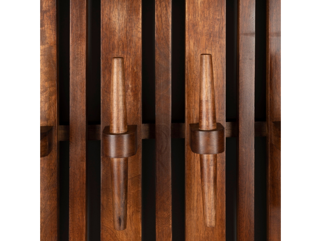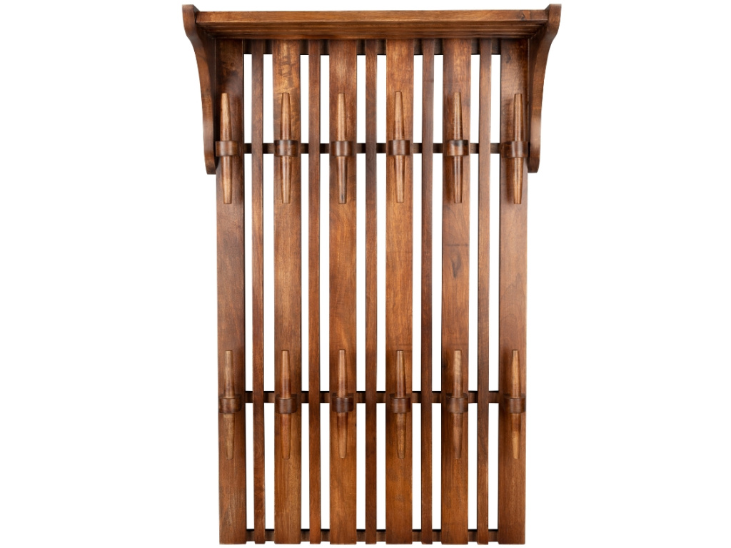 Nástěnný věšák DUTCHBONE JAKUB pochází ze série produktů, díky kterým může být vaše chodba či předsíň dokonale sladěna v jednotném designu. Věšák disponuje kromě 12 věšáků také praktickou policí, kterou využijete třeba k odložení čepic, šál, šátků i rukavic. Věšák je vyrobený z mangového dřeva – jeho výrazná kresba v interiéru skvěle vynikne. Oblečte vaši předsíň do nového se sérií masivního nábytku Jakub!