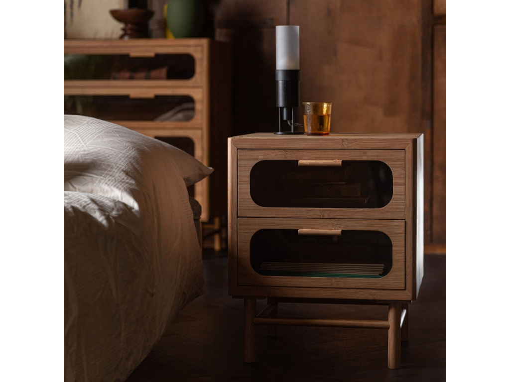 Jednoduchost a čistota designu nočního stolku CAROUN od značky DUTCHBONE nadchne nejednoho obdivovatele moderního minimalismu. Stolek je vyrobený z bambusového dřeva a skla zbarveného do šedých kouřových odstínů. CAROUN nabízí prostorné úložiště v podobě dvou polic, které využijete například v chodbě, v ložnici nebo v obývacím pokoji. Nechte se okouzlit spojením krásy přírodního odstínu dřeva a jednoduchým, funkčním designem s promyšlenými detaily! Pokud toužíte po dokonale sjednoceném interiéru, doporučujeme vitrínu doplnit dalšími produkty ze série CAROUN.