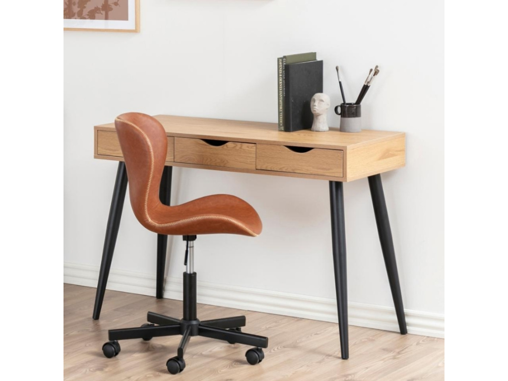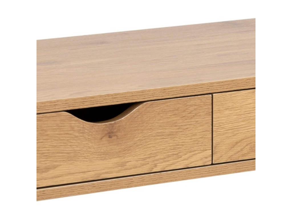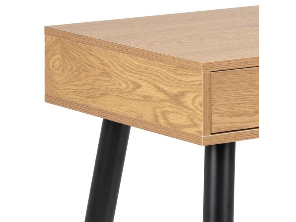 Pracovní stůl Pluto je nábytkem s výraznými prvky retro stylu, avšak v kombinaci s praktickými moderními materiály. Stůl poskytuje úložný prostor ve třech zásuvkách.