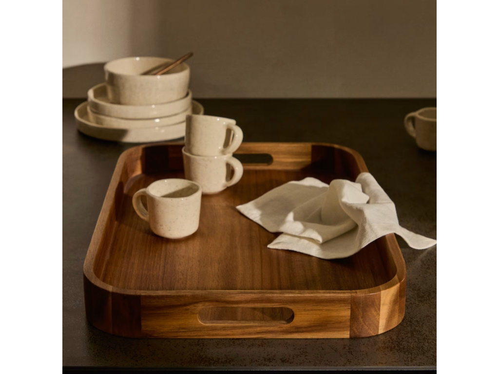 Servírovací podnos Sesilu od Kave Home představuje skvělý doplněk pro každou jídelnu, pergolu i terasu. Můžete s ním servírovat snídani, oběd i večeři a zároveň doladit prostírání designovým prvkem. Podnos je vyrobený z teakového dřeva s krásnou přirozenou kresbou a pyšní se certifikací FSC. Díky ní dřevo pochází z udržitelného a zodpovědného lesního hospodářství. Podnos skvěle zapadne do všech moderních i severských interiérů.