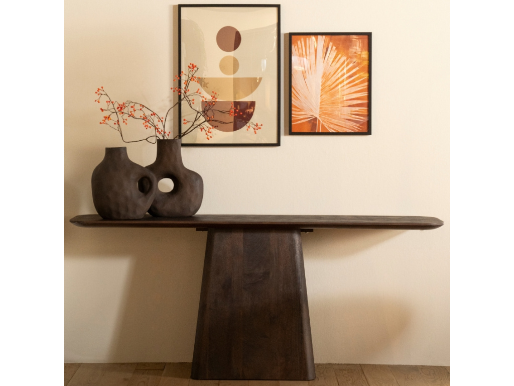 Nechte se unést dokonale minimalistickými tvary masivního nábytku Aron od značky Eleonora, který vás okouzlí svým designem, ale i kvalitním materiálem. Kolekce Aron nabízí různě velké jídelní stoly, elegantní konferenční či odkládací stolky nebo například stolek toaletní. Nábytek je vyroben z masivního mangového dřeva v hnědém nebo černém odstínu, díky čemuž perfektně zapadnou do klasických, moderních i rustikálně laděných interiérů. Doplňte váš domov o jedinečný kousek z této kolekce, který se stane středobodem jakékoliv místnosti.