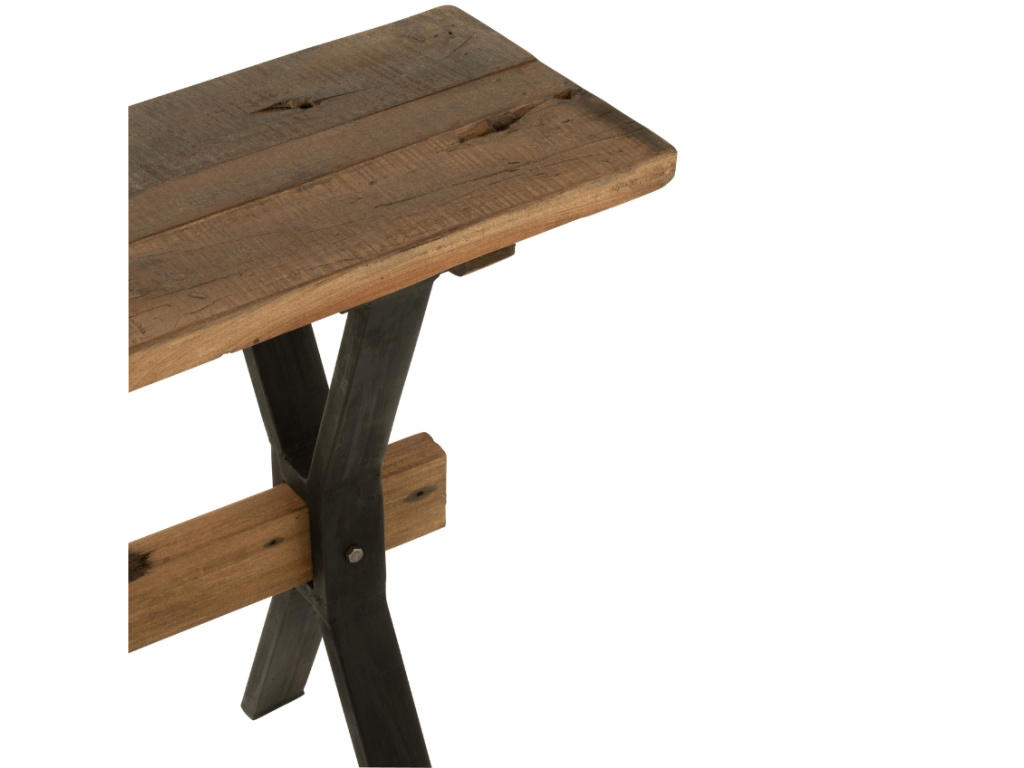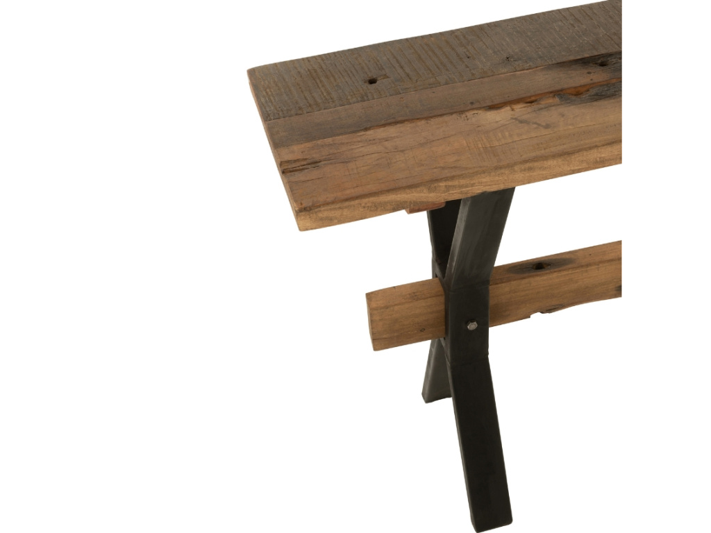 Design toaletního stolku Talia od značky J-line v sobě dokonale snoubí rustikální styl s industriálním a zapadne do přesně tak laděných interiérů. Deska z masivního recyklovaného dřeva je doplněna kovovou podnoží. Sjednoťte design ve svém interiéru s nábytkem z kolekce Talia, která nabízí také jídelní stůl nebo lavici k sezení.