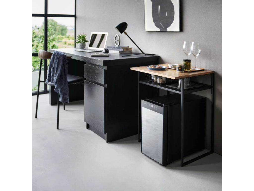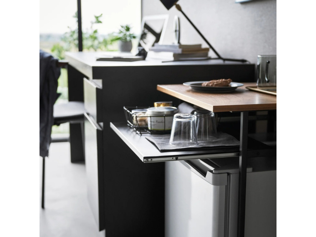 Kompaktní, stylový a překvapivě praktický. Odkládací stolek Tower od japonské značky Yamazaki kombinuje minimalistický kovový rám, dřevěnou desku a chytrou výsuvnou polici, která vám poskytne přesně tolik prostoru, kolik zrovna potřebujete. Díky kompaktním rozměrům se skvěle hodí do menších interiérů, domácích pracoven, ložnic nebo hotelových pokojů. Volný prostor pod deskou nabízí ideální místo pro mini ledničku, úložný box nebo uschování židle. Ať už jej využijete jako kosmetický stolek, pracovní plochu nebo stylový kousek do obýváku, vždy bude působit čistě, elegantně a promyšleně.