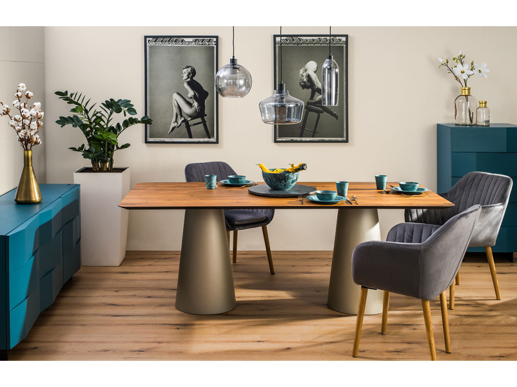 Luxusní jídelní stůl Marco Barotti Tivoli je designový kousek, který vás upoutá již na první pohled. Dýhovaná dubová deska v krásném hnědém odstínu vytváří společně s lakovanou MDF podnoží v matném titanovém odstínu jedinečné spojení, které zaujme zejména ty, kteří milují kvalitní materiály v moderním pojetí. Marco Barotti je koncept několika designérů, které spojuje smysl pro detaily a vášeň dělat funkční a zároveň moderní designový nábytek. Přídavnou otočnou desku je možné samostatně dokoupit.