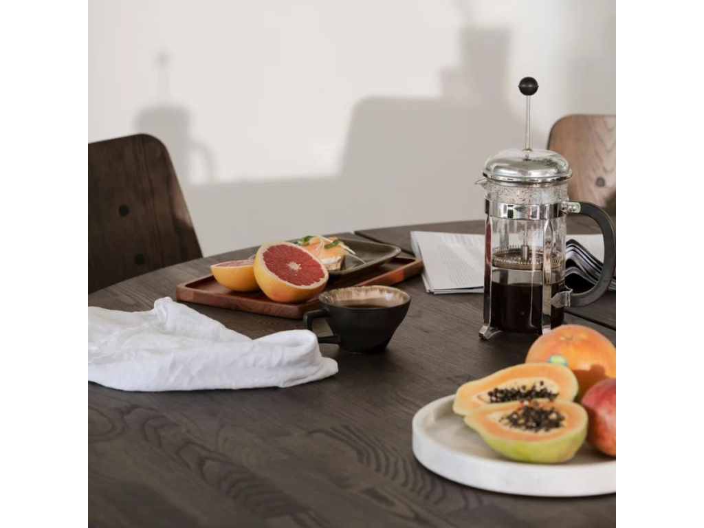 Elegantní jídelní stůl ROWICO CARRADALE nabízí prostornou kruhovou desku z masivního dubového dřeva. Ta je vkusně doplněna kovovou podnoží, která zaujme svým tvarem - připomíná písmeno A. Stůl bude vypadat skvěle především ve světlých interiérech doplněný o čalouněné židle - doporučujeme se podívat například na sérii židlí ROWICO NORWELL nebo ROWICO SIERRA. Vaše jídelna získá s tímto krasavcem úplně jiný, seriózní a nadčasový vzhled. Neváhejte a dopřejte vašemu rodinnému stolování styl!