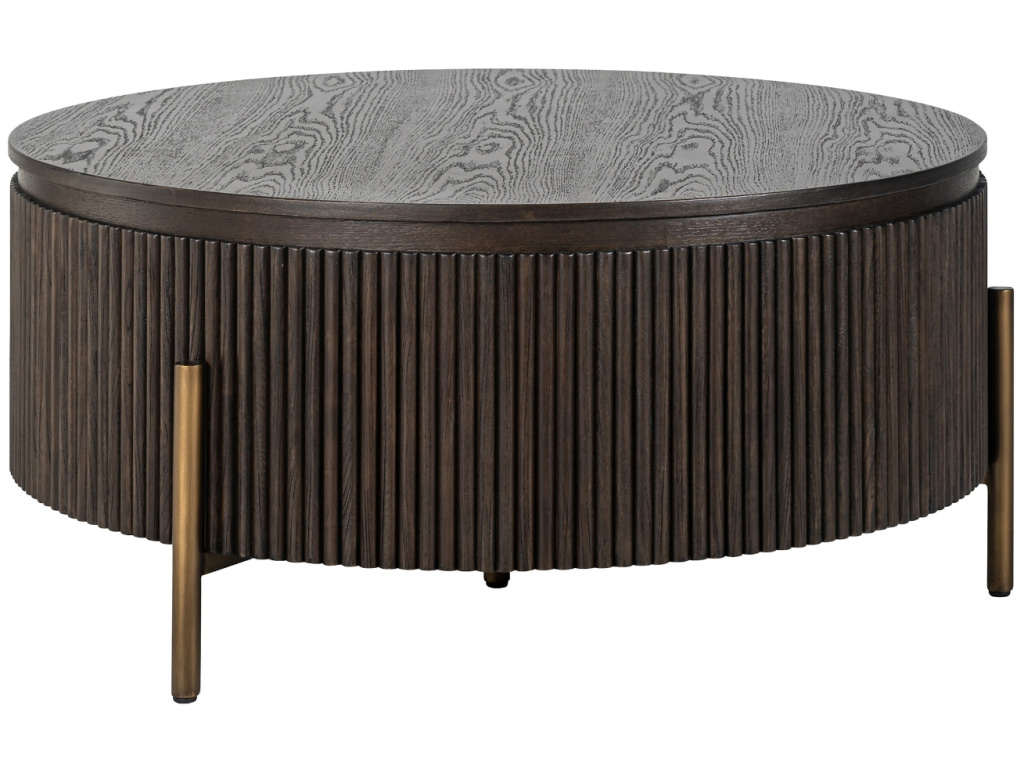 Unikátní design - je vystihující popis celkového vzhledu konferenčního stolku Luxor od značky Richmond Interiors. Kulaté tělo, žebrovaný design a teplo dubového dřeva perfektně souzní v kombinaci s kovovou subtilní podnoží ve zlaté barvě. Tento kousek doladí interiéry v moderním a skandinávském stylu. Zkombinujte nábytek z kolekce Luxor a vytvořte si tak dokonale sjednocený styl vašeho domova.