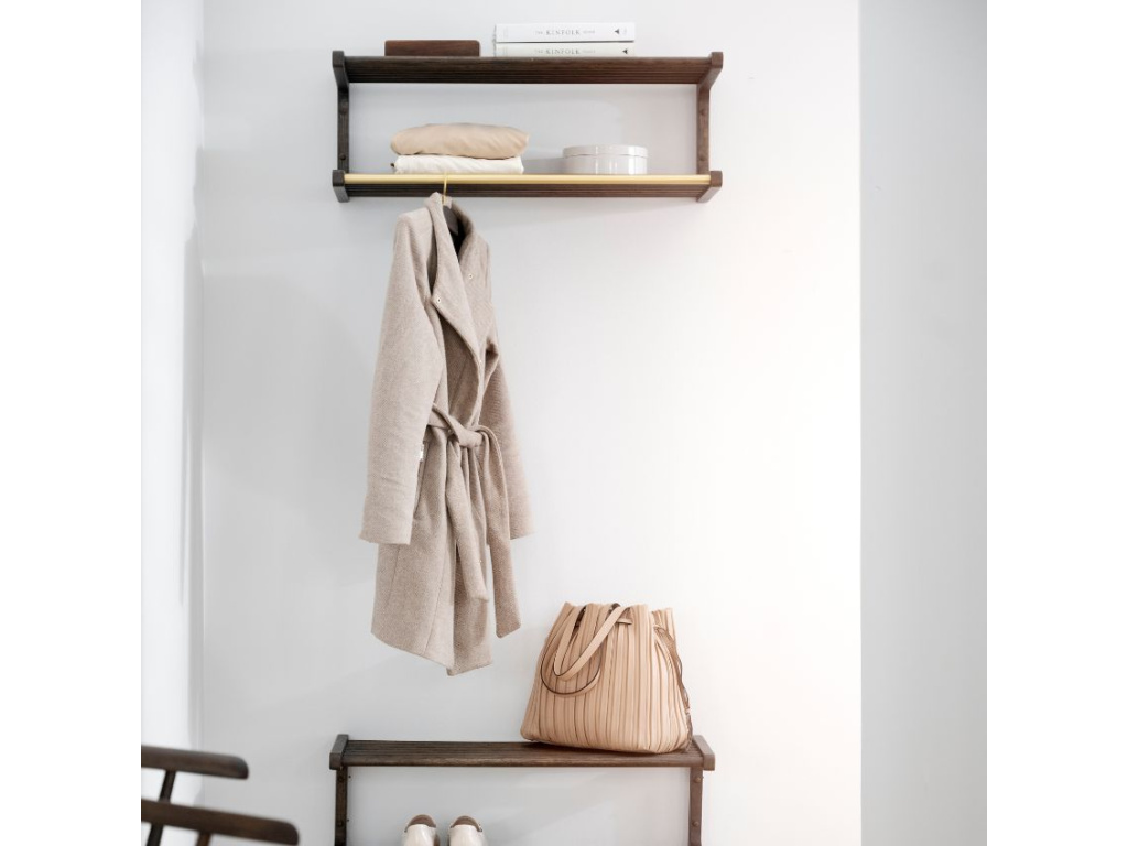 Nástěnný věšák se dvěma policemi INVERNESS značky ROWICO je vyroben z masivního dubového dřeva a jeho tmavá hnědá barva je vkusně doplněna zlatou závěsnou tyčí. Věšák se skvěle hodí k odložení čepic a klobouků i šál a rukavic, závěsnou tyč ale můžete opatřit ramínky a umístit tak na něj i kabáty a bundy. Dopřejte vaší předsíni nové vybavení a slaďte ji s produkty z elegantní a nadčasové série INVERNESS - prostor s nimi získá nádech vintage stylu.