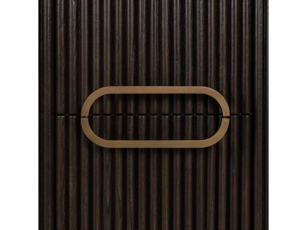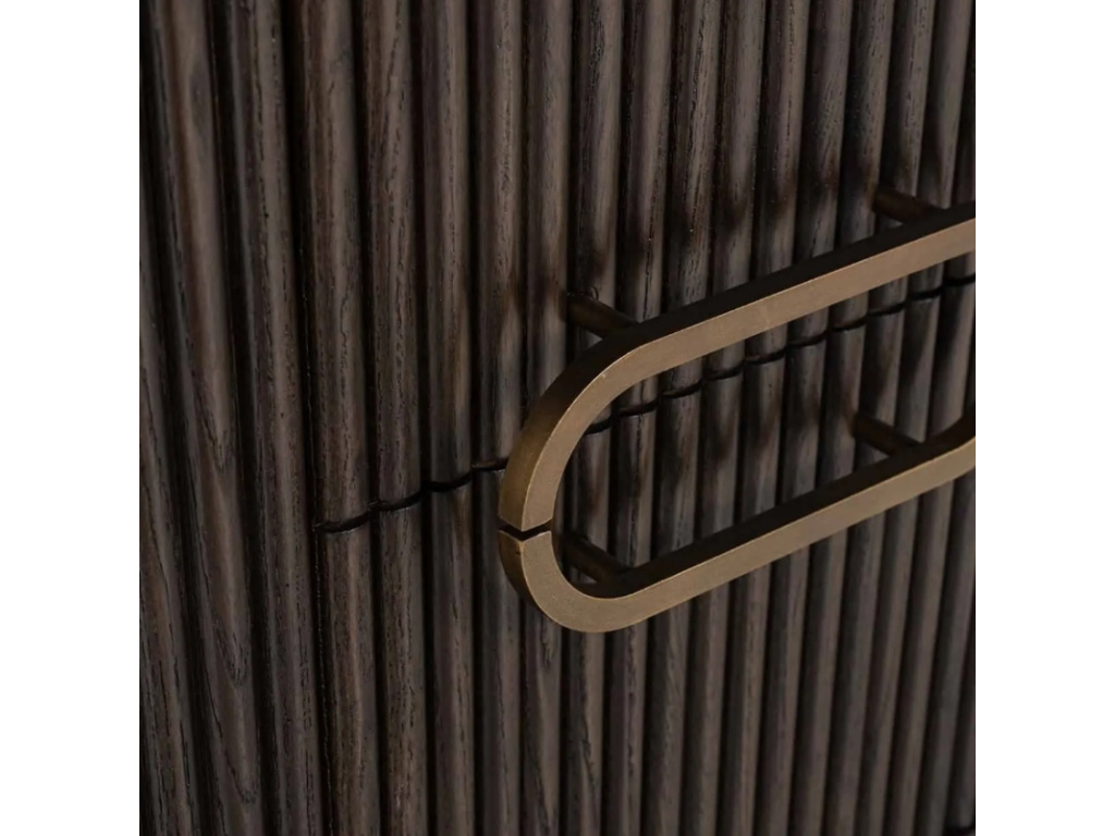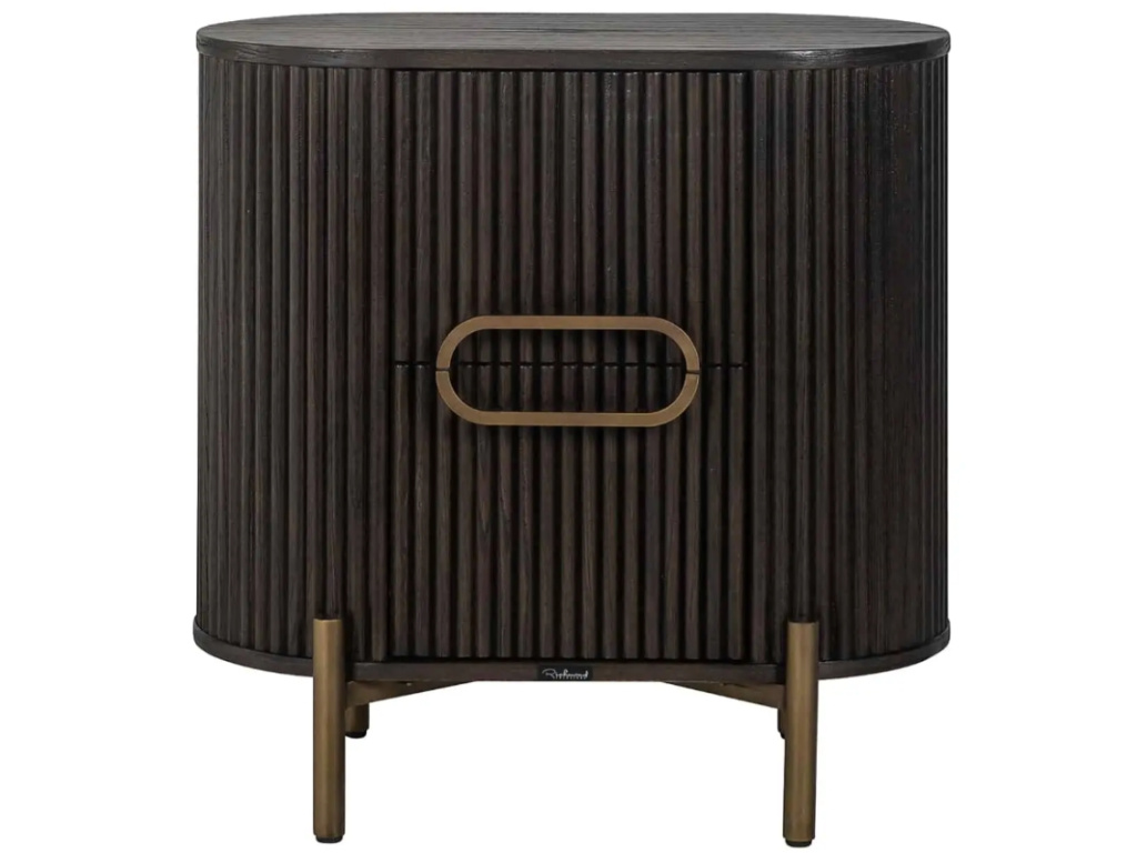 Unikátní design - je vystihující popis celkového vzhledu nočního stolku Luxor od značky Richmond Interiors. Oválné tělo, žebrovaný design a teplo dubového dřeva perfektně souzní v kombinaci s kovovými úchyty a subtilní podnoží ve zlaté barvě. Tento kousek doladí interiéry v moderním a skandinávském stylu. Zkombinujte nábytek z kolekce Luxor a vytvořte si tak dokonale sjednocený styl vašeho domova.