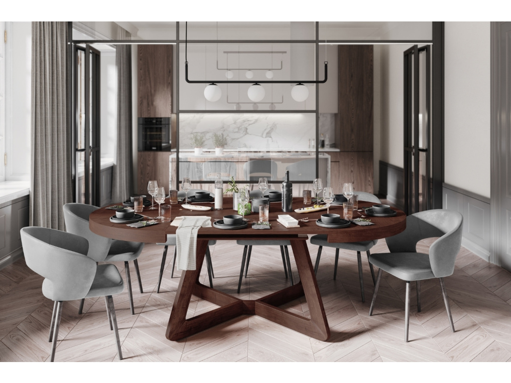 Jídelní stůl Windsor & Co Bodil zaplaví váš interiér luxusem a jedinečným designem. Vysoká deska z dubové dýhy je doplněna o masivní dubovou podnož, která je designově překřížená a dodává tak stolu osobitost. Příjemnou vlastností je možnost stůl rozložit až na 230 cm, díky čemuž pohodlně usadíte až 8 hostů. Stůl se skvěle hodí do moderních interiérů s prvky elegance. Stůl se díky svým vlastnostem hodí také do komerčních prostor jako jsou restaurační zařízení či hotely.