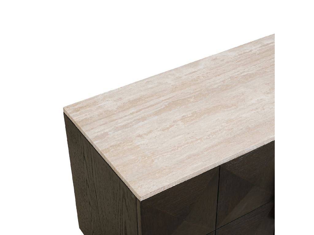 Dubový TV stolek Claremont je skvělou volbou pro ty, kteří hledají stylový a praktický kousek. Jeho robustní design s pyramidovým vzorem a deskou z přírodního kamene vytváří působivý vizuální celek. Kovové úchytky v mosazné barvě dodávají stolku nádech elegance. Prostorné úložné prostory zajišťují, že všechny vaše nezbytnosti budou vždy na svém místě. Stolek se dobře kombinuje s ostatními produkty z řady Claremont.